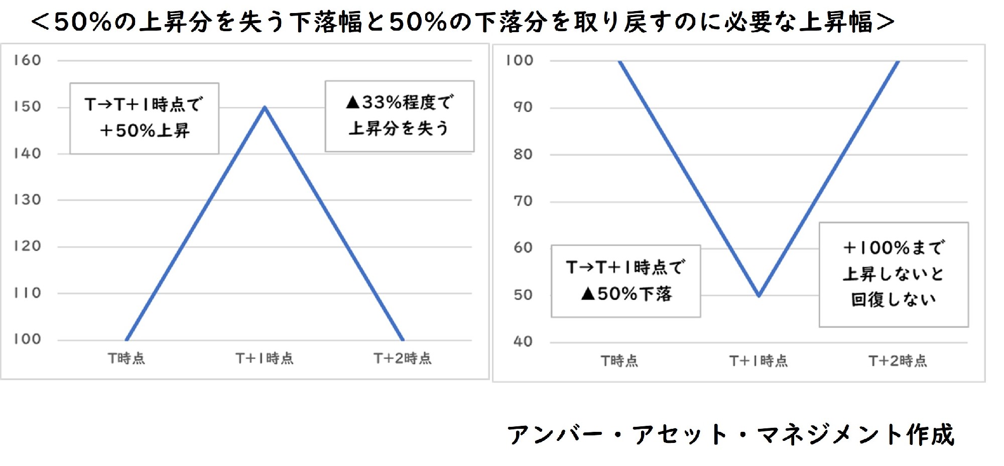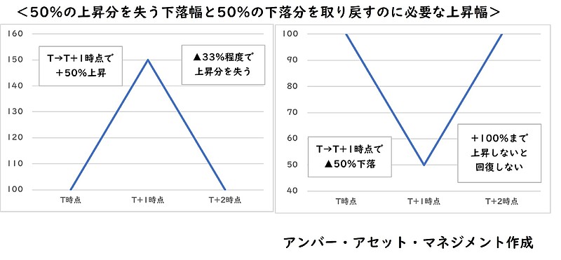 また、旬を過ぎて含み損を抱えた運用に関するご相談を受けることがありますが、運用の格言で「損切り」の重要性がよく叫ばれている通り、一度大きく下げた運用でその下落分を取り戻すのは非常に困難です。5割上がっても3割下がったら上昇分を失うのですが、5割下がったら100%上がらないと下落分は取り戻せません。