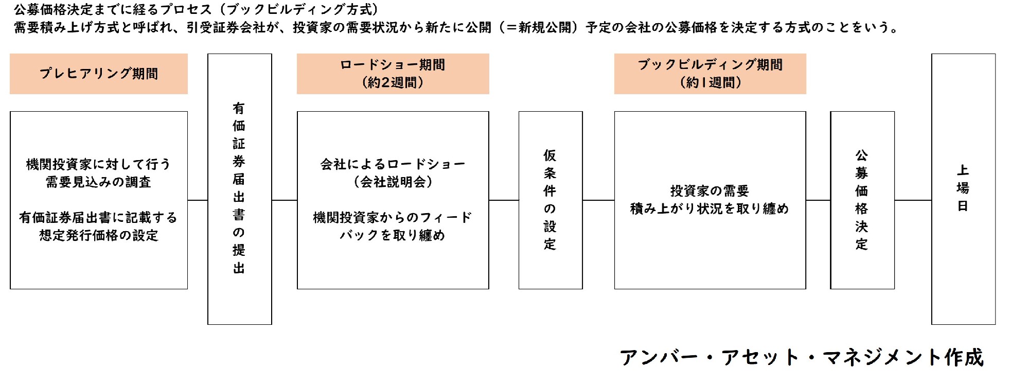 IPOではブックブルディング方式と呼ばれる仕組みで、引受証券会社が投資家の需要から新たに新規株式公開する予定の会社の公募価格を決めるのですが、上場前に投資家が公募価格で購入することで、上場日から市場で売却できるようになります。