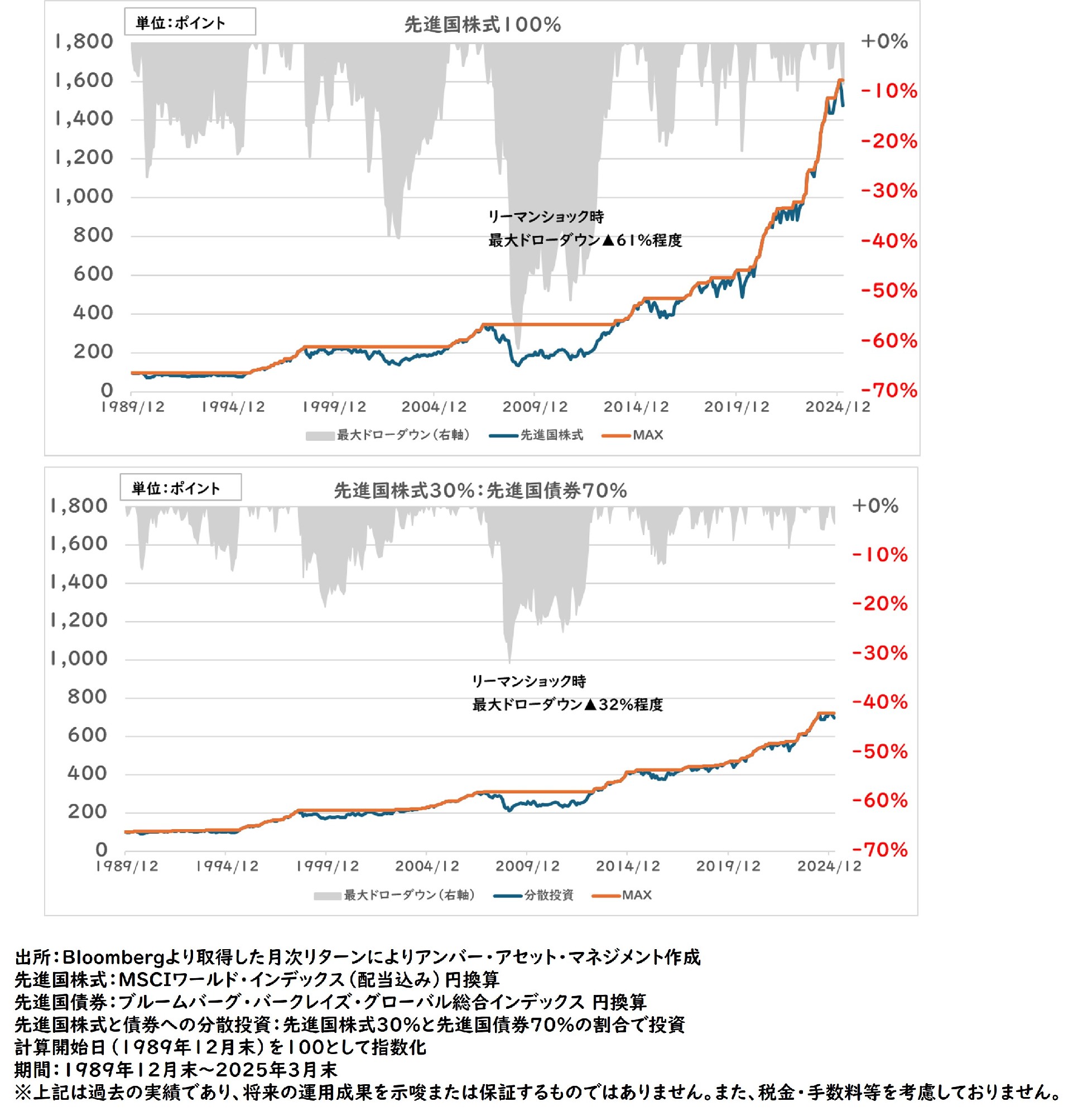 投資する資産が有する本源的なリターン源泉が確りしていれば、時間は掛かりますが運用資産は着実に回復して更に成長することが期待出来ます。一方で意図しないマイナスを抑制するためにも許容できるリスク水準に応じた運用を構築しておくことも重要な視点となります。