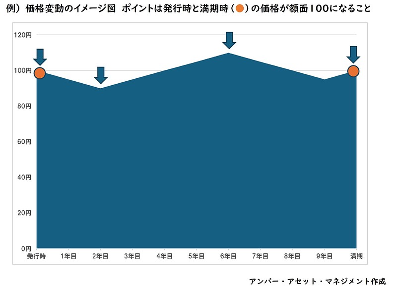 債券のもう一つの特徴は基本的には額面100で発行されて満期時に額面100で償還されることです。