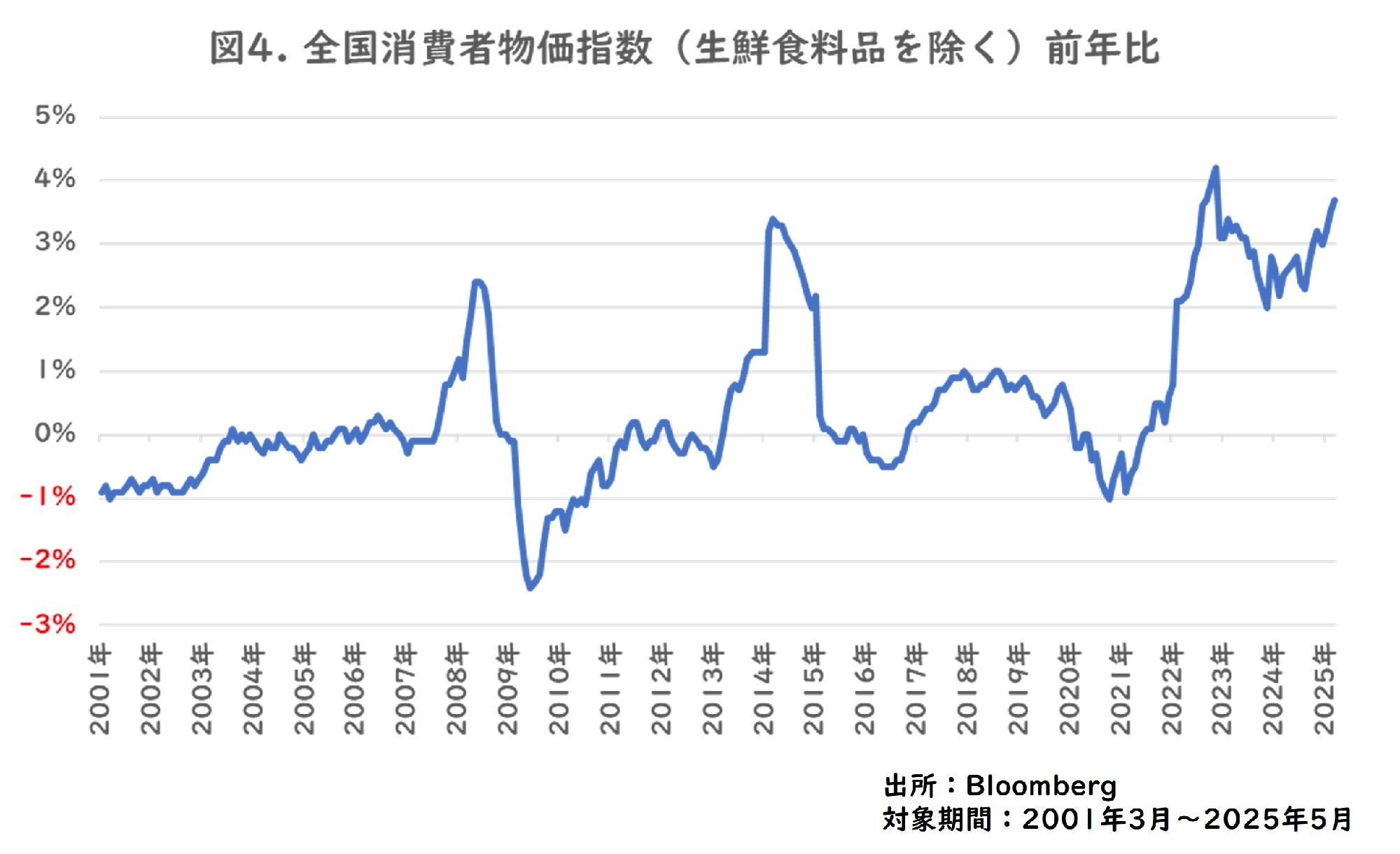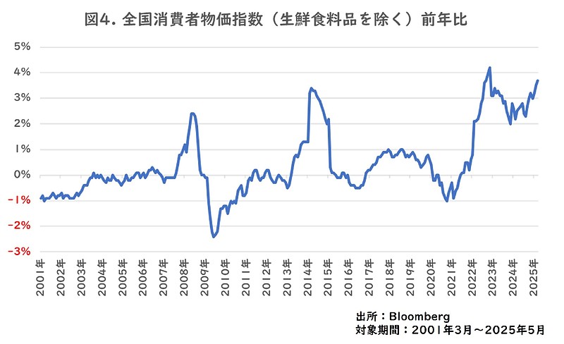 日本で消費者物価指数(生鮮食料品を除く)前年度伸びは2025年になってから3%を超える水準となっています。この2-3年は「値上げ」が世間でキーワードとなっているなど、現金・預金の実質的な価値は物価上昇の影響を受ける可能性があります。