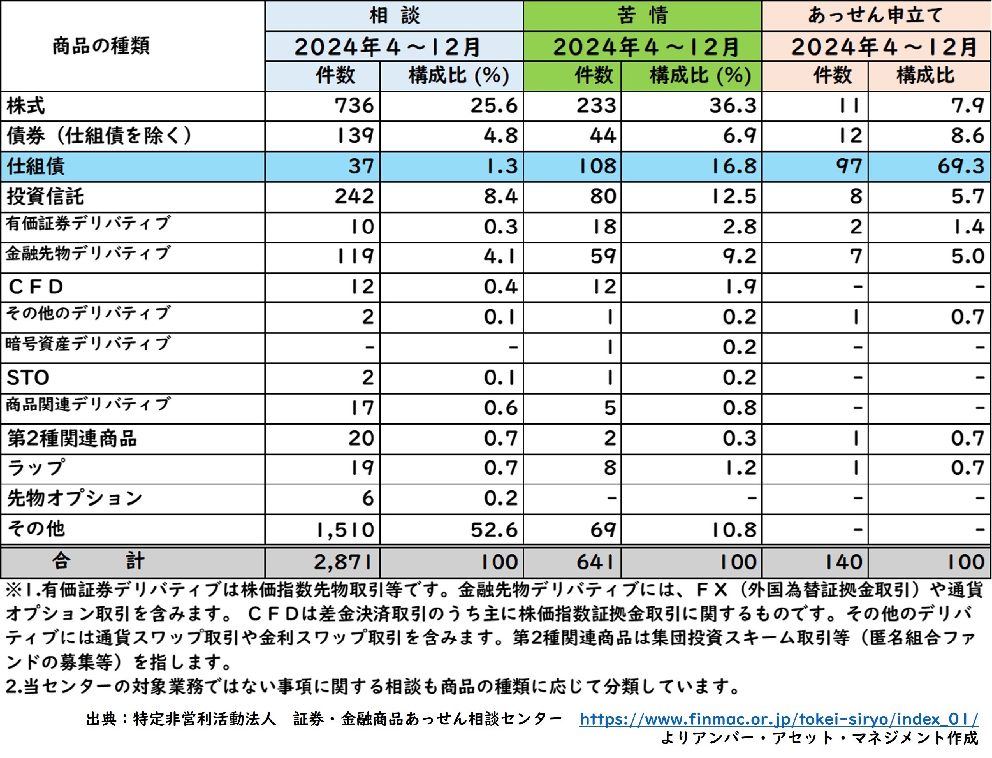 証券・金融商品あっせん相談センターのデータによると、2024年4月から12月で金融商品に関する苦情の中で仕組債の割合はいまだに16.8%と上位になっていて、トラブル解決のあっせん事例に至っては全体の約7割が仕組債に関するものになっています。