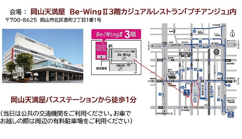 会場 : 岡山天満屋 Be-WingⅡ 3階カジュアルレストラン「プチアンジュ」内