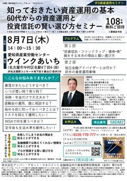 (福岡)知っておきたい資産運用の基本60代からの資産運用と投資信託の賢い選び方セミナー