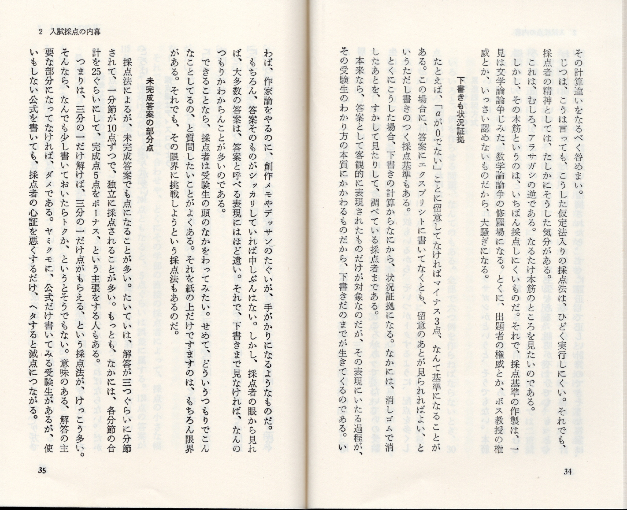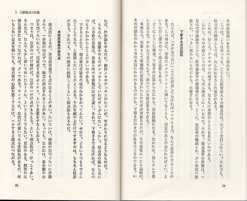 中公新書(現在は中公文庫)の『数学受験術指南』(森毅著)には京都大学における、数学の入学試験の採点での内幕が記されています。