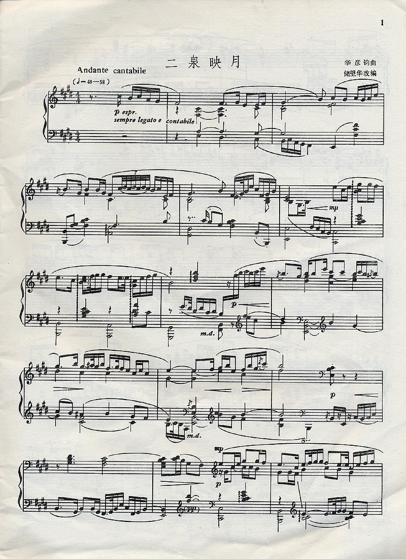 最初の曲が『二泉映月』という曲でした。見るからに難しそうな曲で、私のお稽古事のピアノのレベルでは到底無理でした。