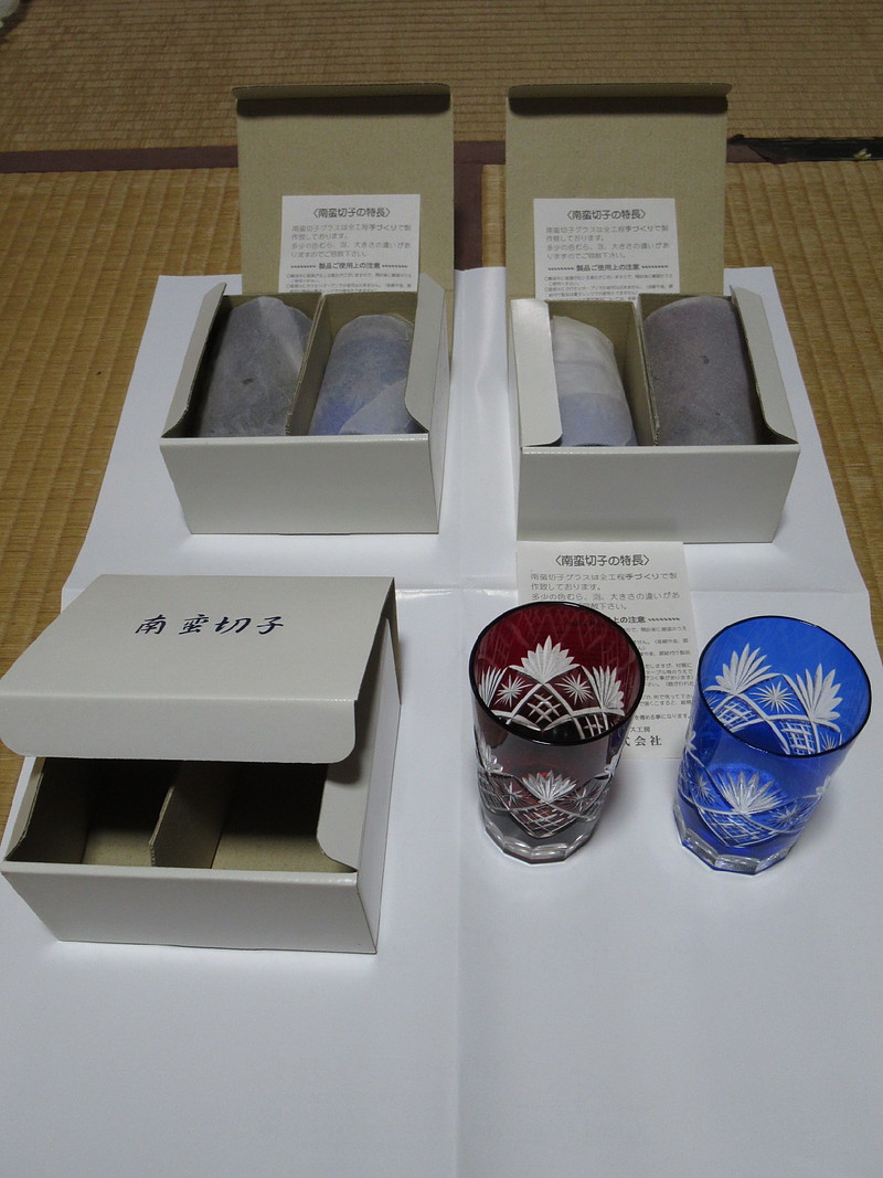 上記店舗、古物商の資格を取っていることから、本業の古書以外に少しぐらいなら他の物を置いても良いとのことでした。ただ、価格設定は難しいので、自ら付けることになりました。そこで、例えば上記『南蛮切子』、2個入り箱を1つ1000円としました。3箱ありました。