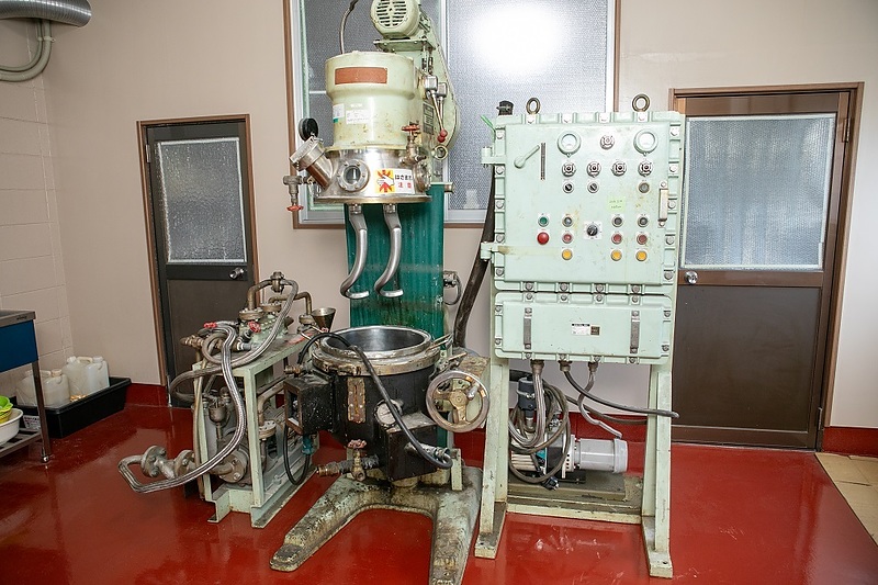 その他仕様:全容量=30リットル、処理量=21リットル、4段変速(自転公転)、 電圧=200V、撹拌用モーター=0.75kW、 昇降用モーター=0.75kW、真空ポンプ=0.4kW、容器加熱=オイル循環方式
