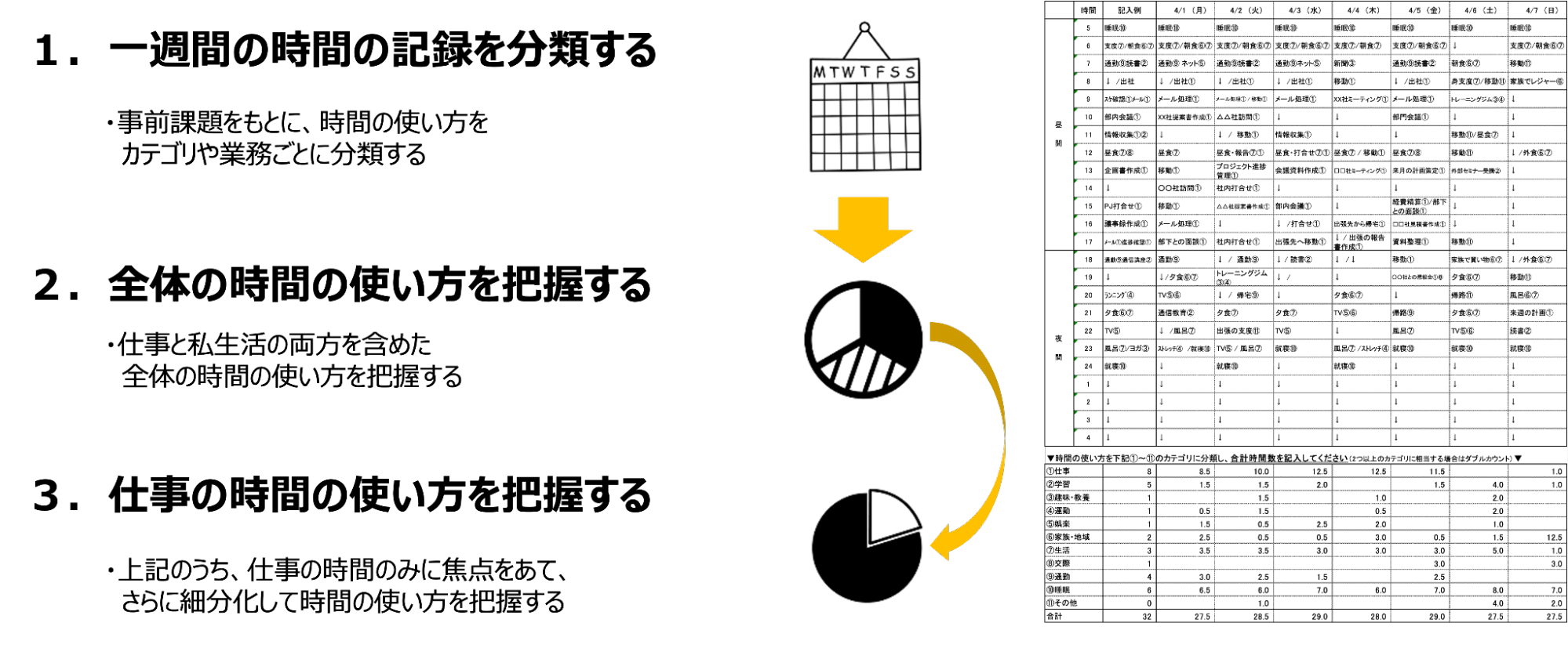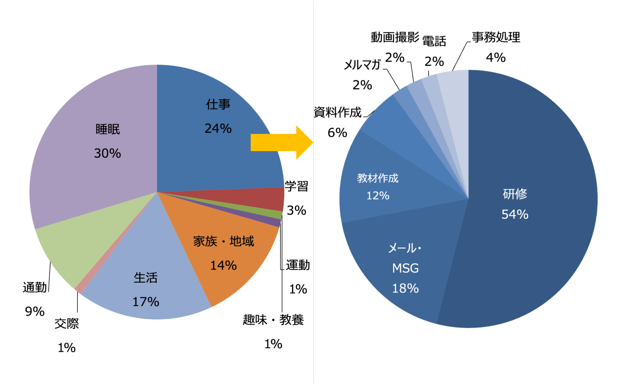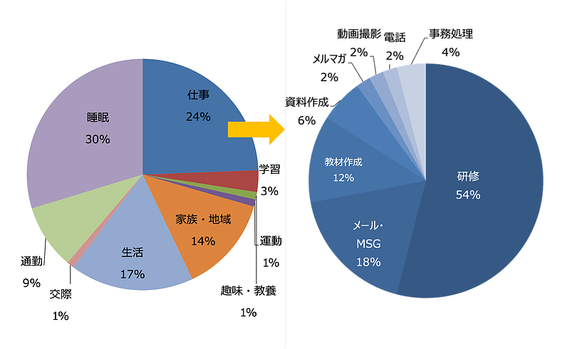 全体の時間の使い方を把握したら、次に「仕事の時間」を切り出して、その内訳を可視化します。