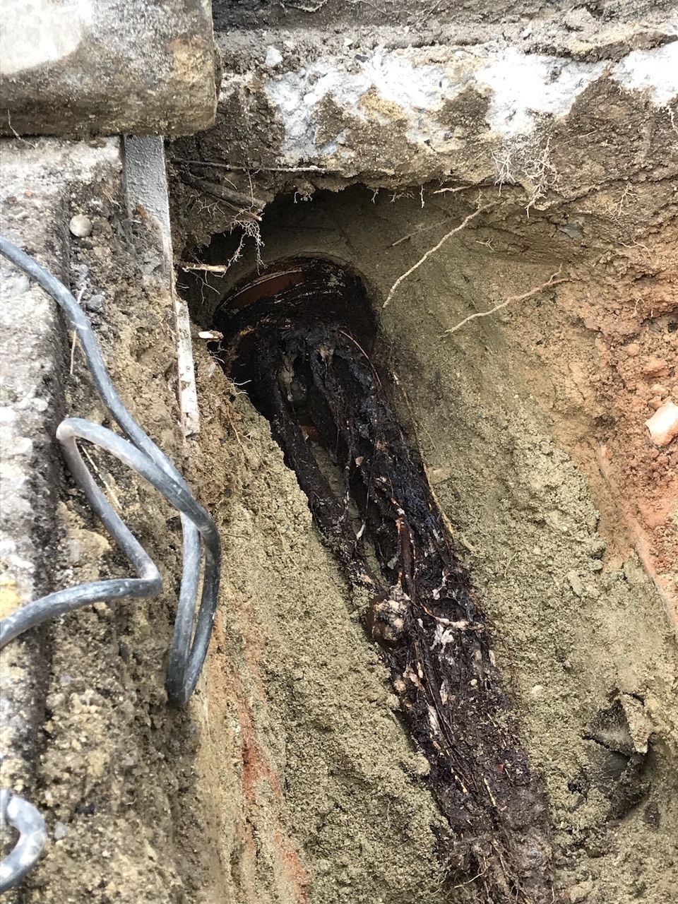 ↑『ここまで根っこが詰まるとアスファルトめくって40万円の大出費でした。』