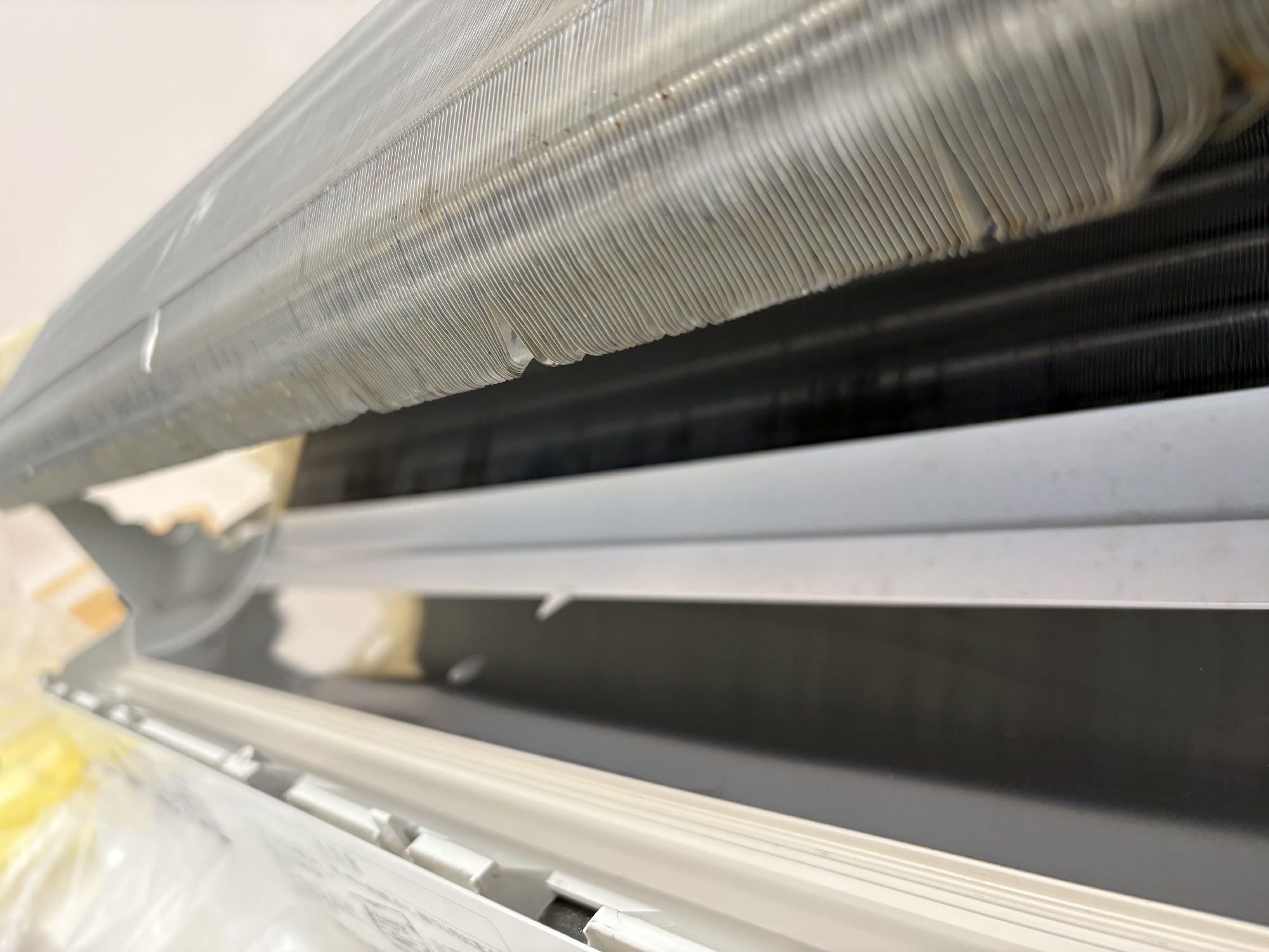 冷房を使うと、内部の熱交換器(アルミフィン)が一気に冷えます。
