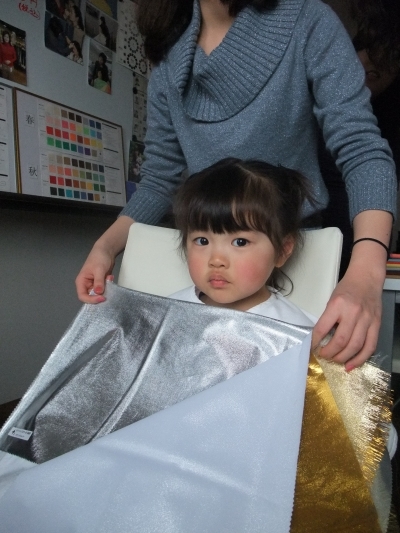 女性2名、男性1名、子ども1名のパーソナルカラー診断の