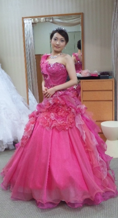 カラードレスは、パーソナルスペシャルカラーのショッキングピンクで♪
