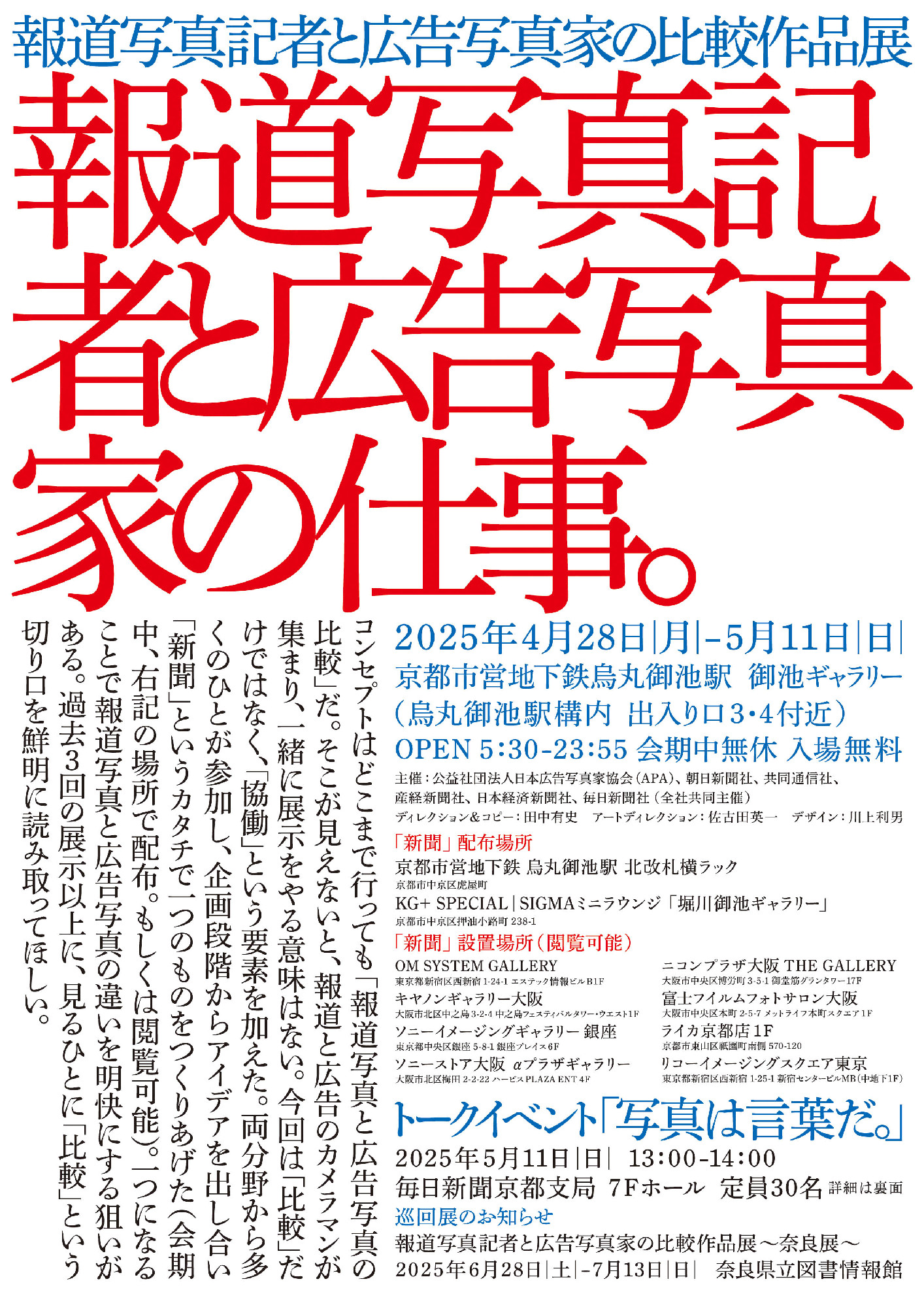 主催:公益社団法人日本広告写真家協会(APA)、朝日新聞社、共同通信社、産経新聞社、日本経済新聞社、毎日新聞社(全社共同主催)