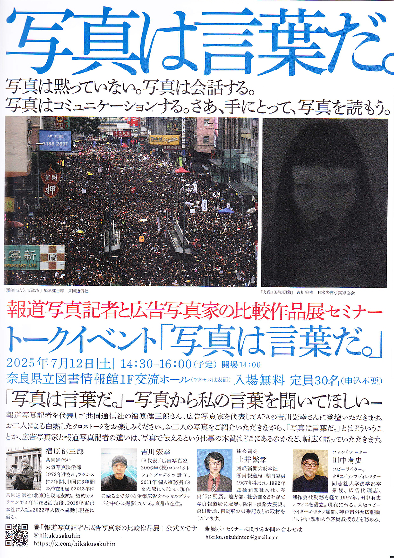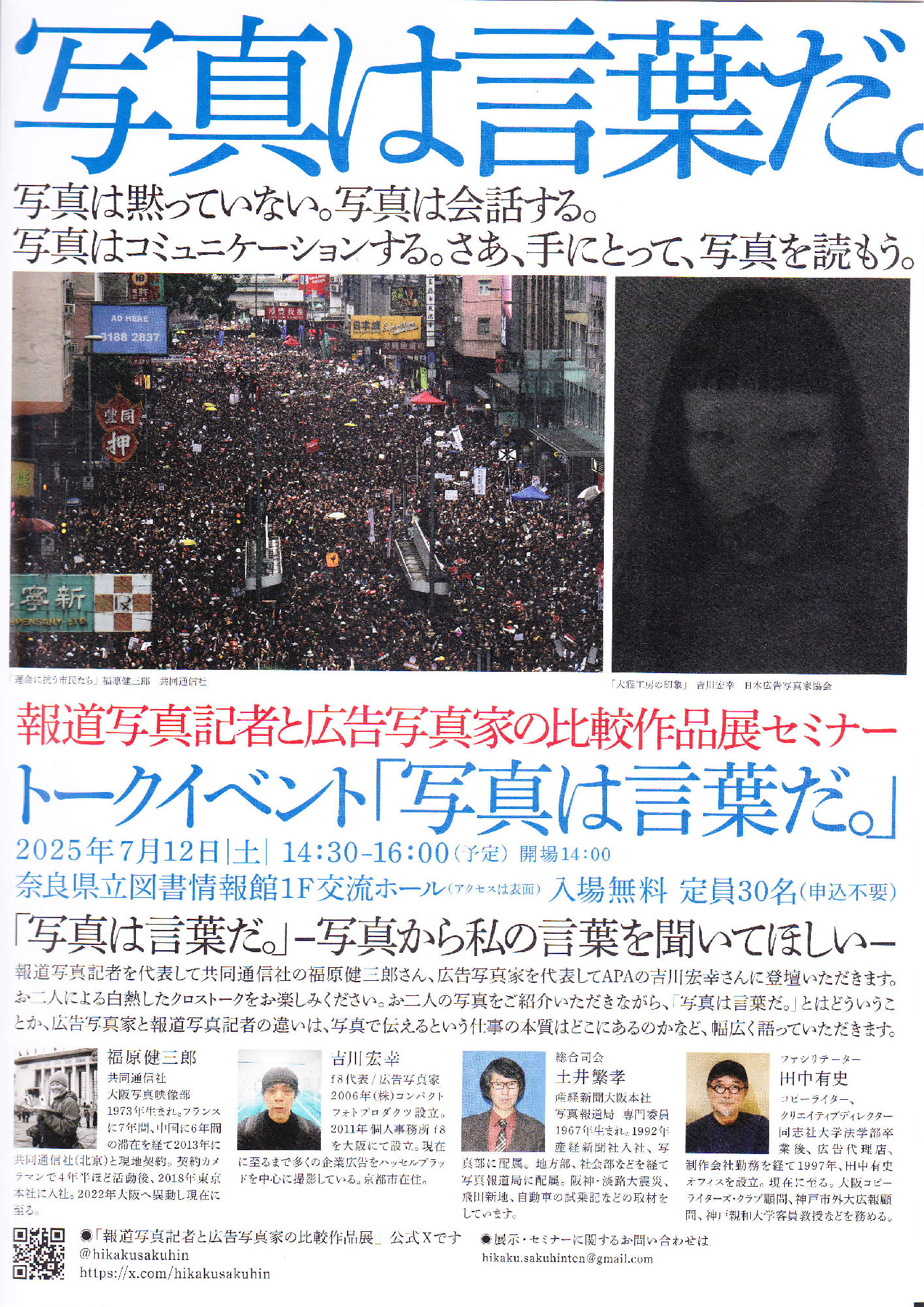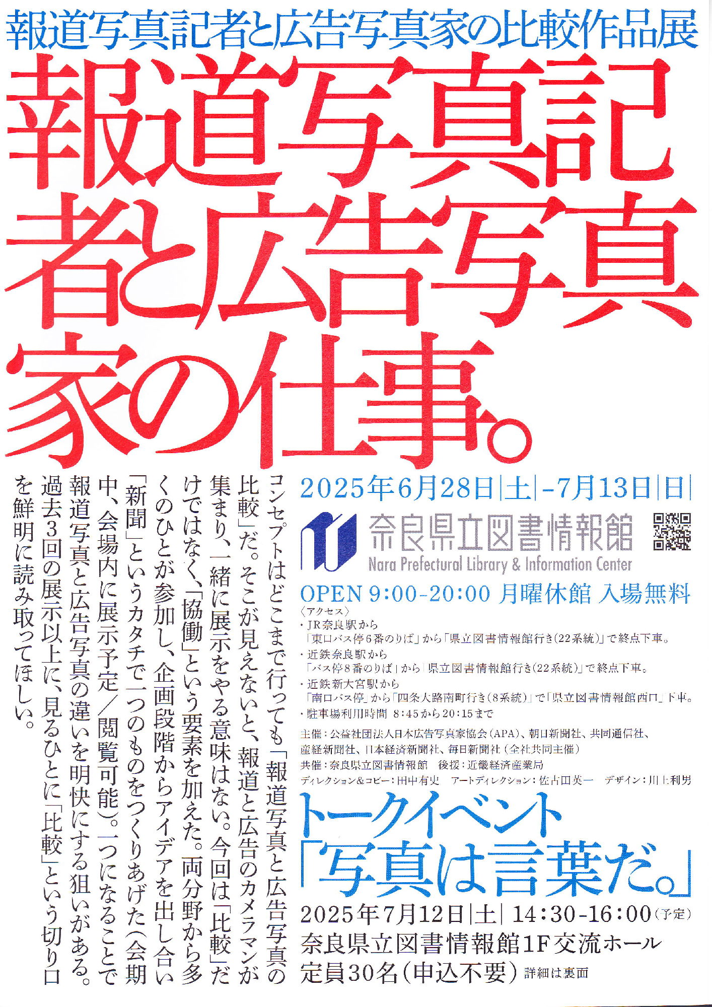 報道写真記者と広告写真家の仕事。6月28日〜7月13日まで、奈良県立図書情報館で展示中。是非、お越しください!#APA日本広告写真家協会