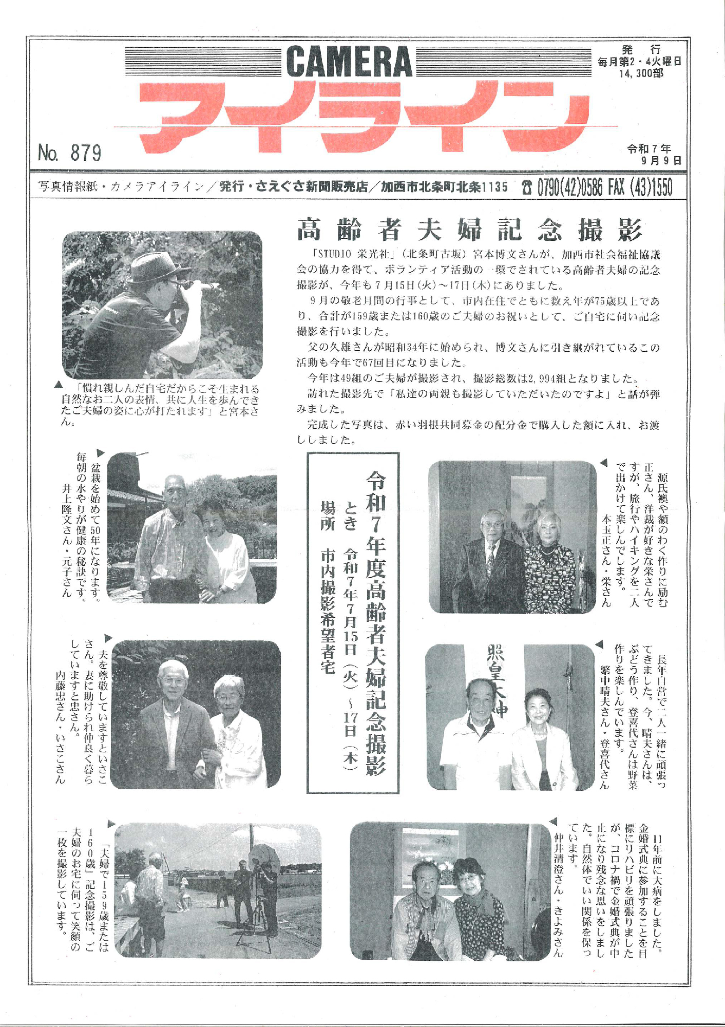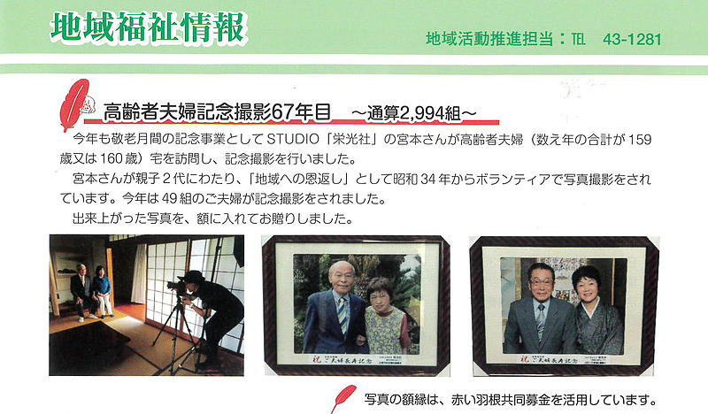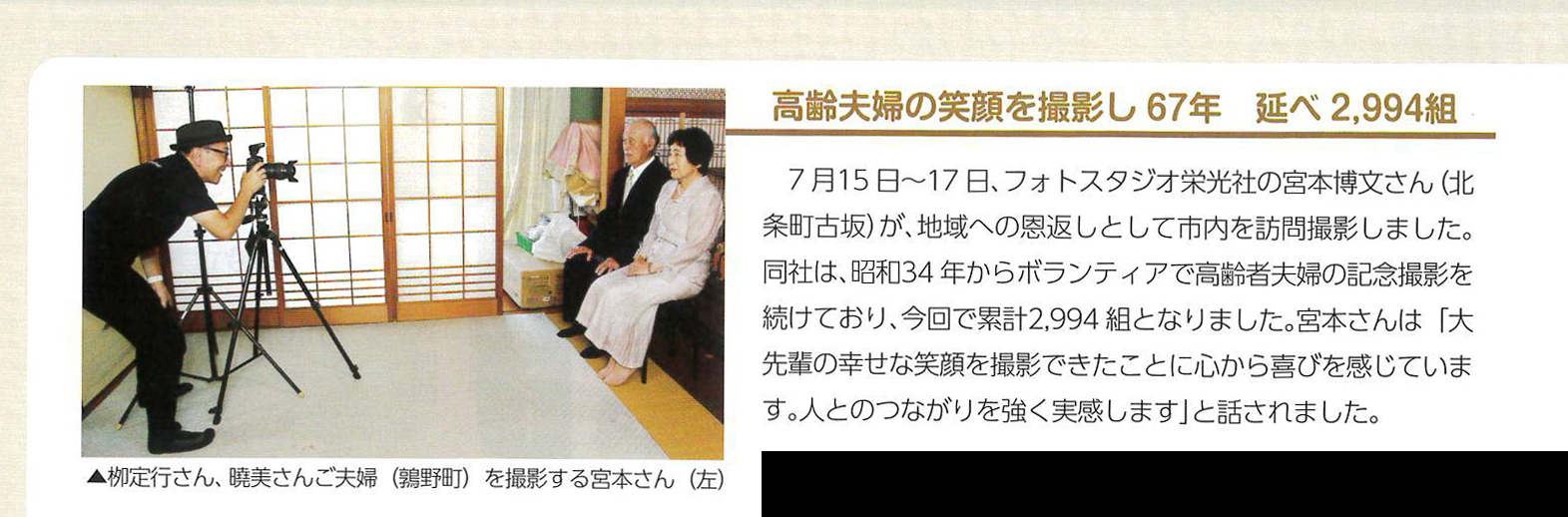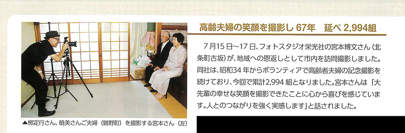 7月に撮影させていただいた「高齢者夫婦記念撮影」が、各紙で取り上げられました。