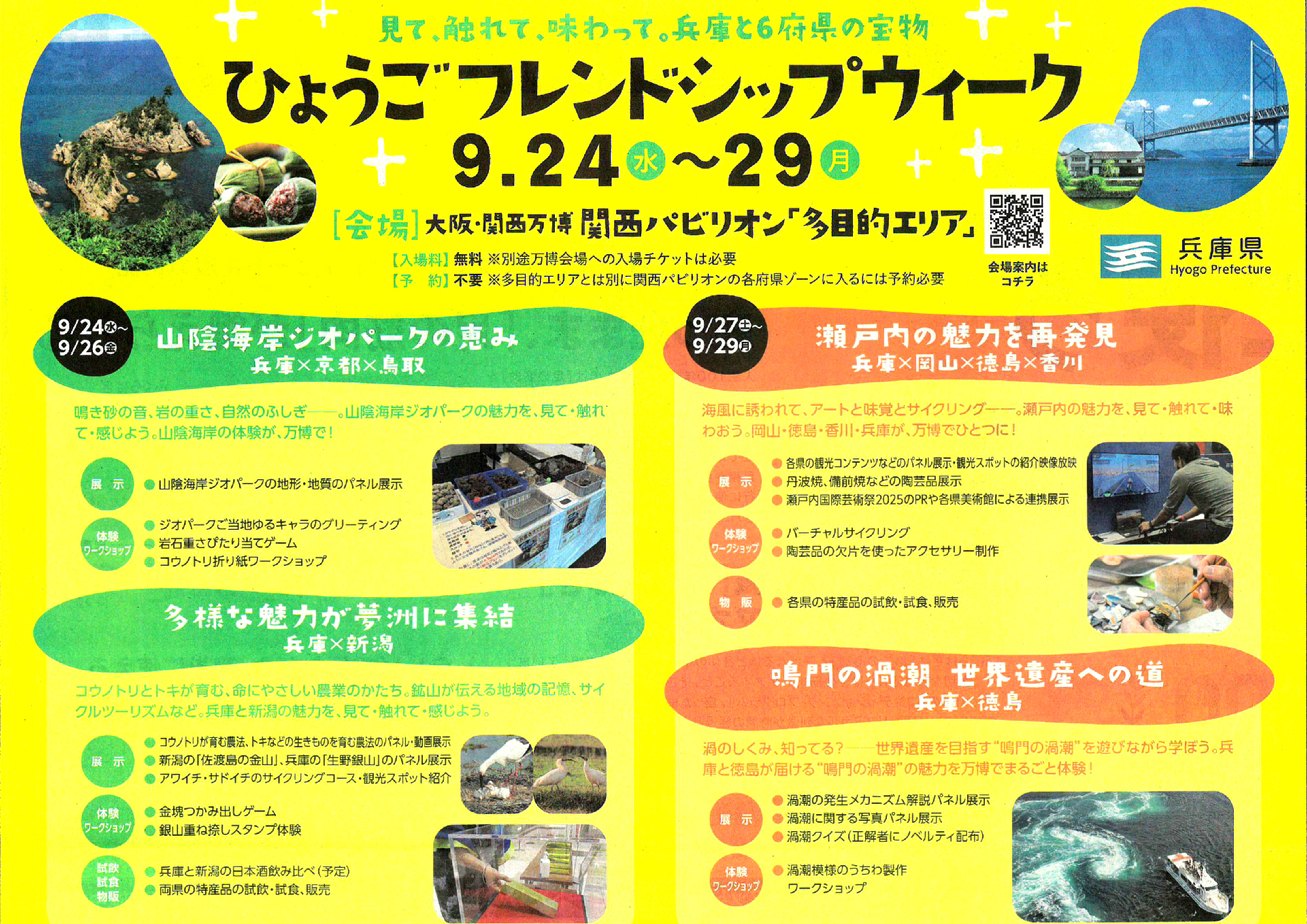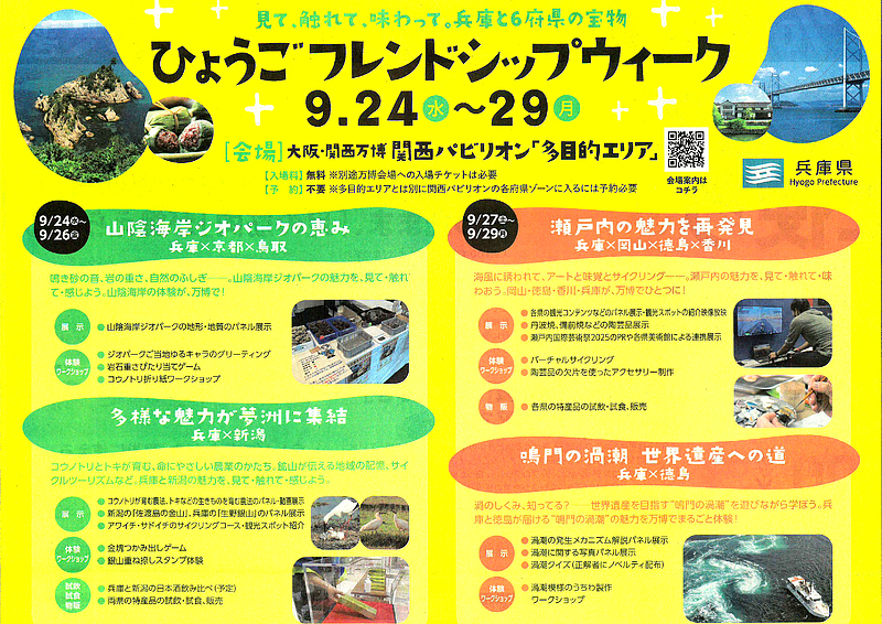 兵庫を中心に、京都・鳥取・新潟・岡山・徳島・香川など6府県が集まり、自然・食・文化の魅力を紹介するイベントです。