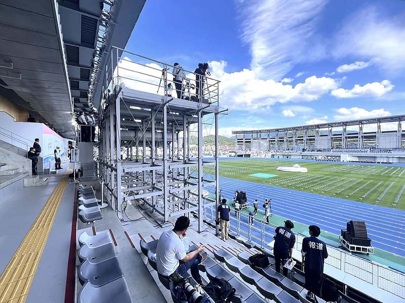 開会式の撮影は、例年の『限定撮影台』から。ロイヤルボックスと同じ目線の高さにある特等席です。平成、令和と続けて撮影の機会をいただき、大変光栄に思います。地元の底力を感じる素敵な式典でした。