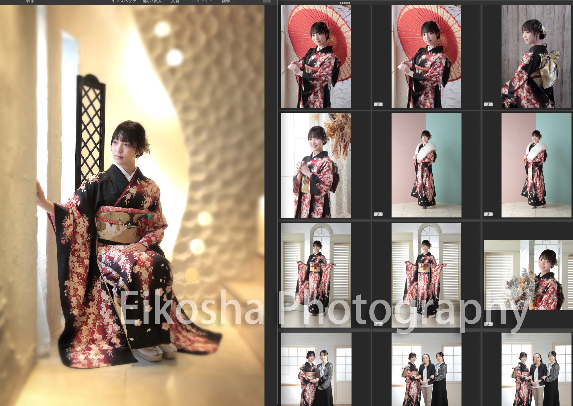 振袖前撮りのために大学のある東京からご帰省くださいました。