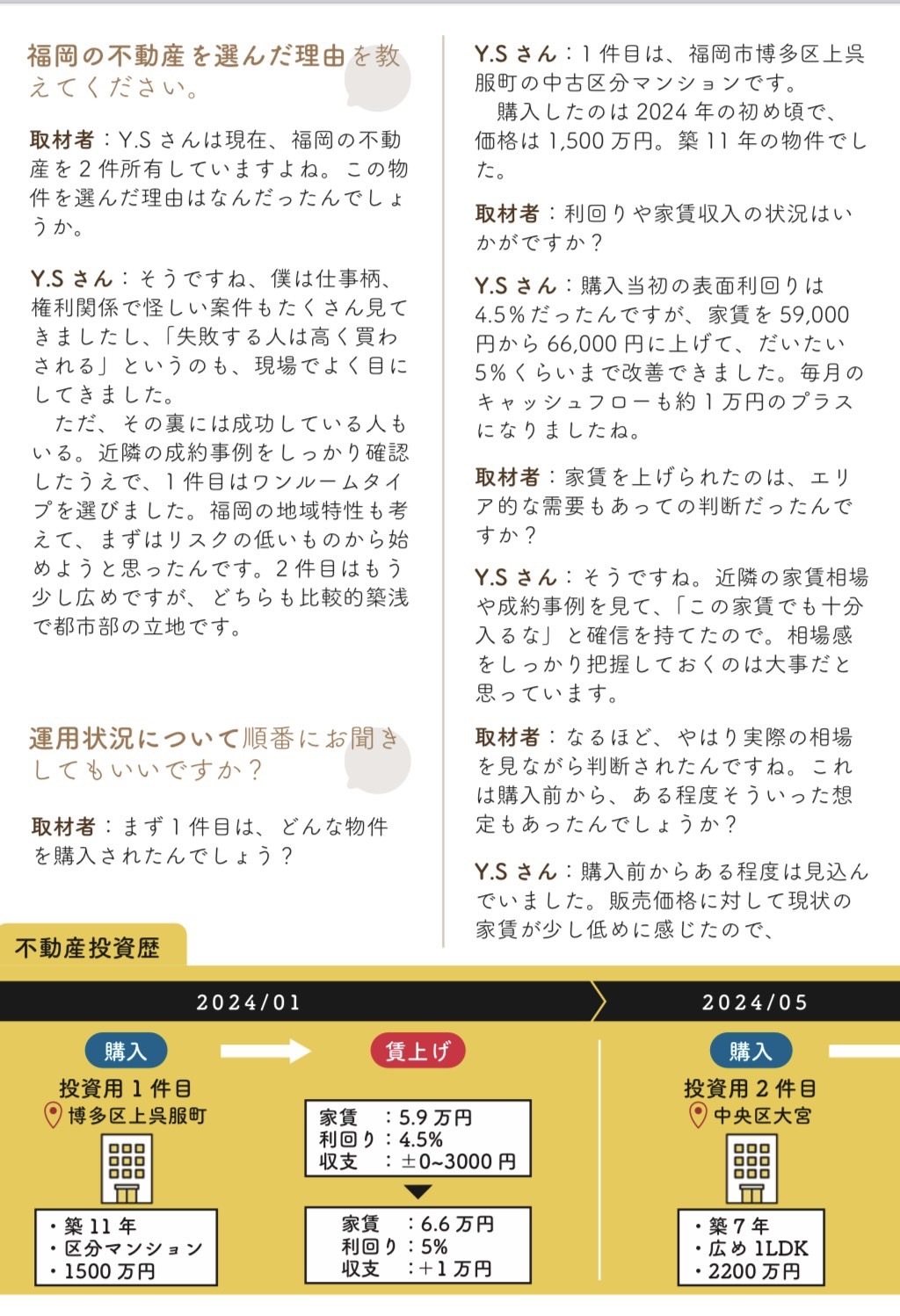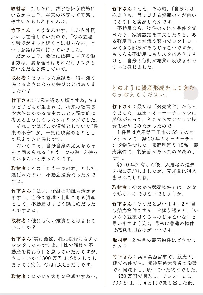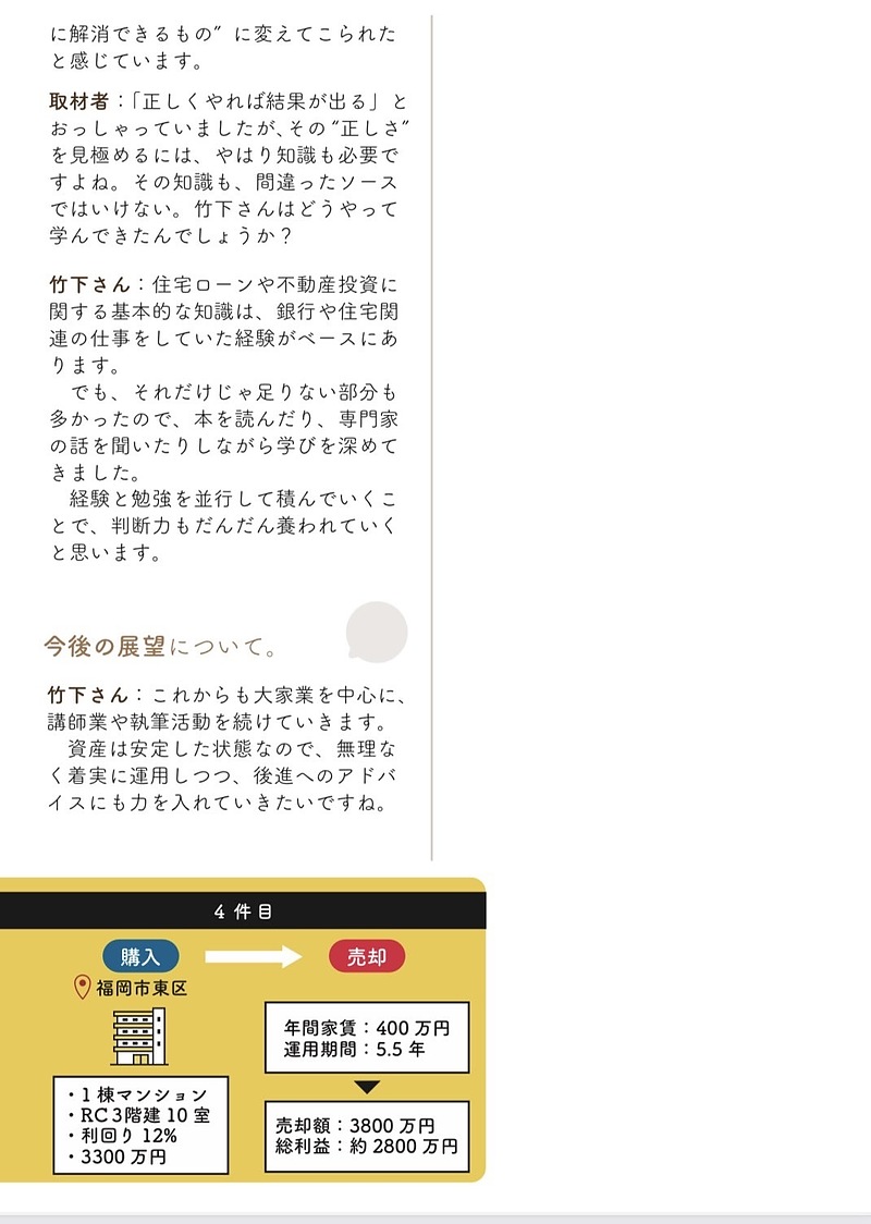 懇意のネクスウェイブ株式会社(福岡市中央区)の投資家インタビュー冊子に掲載されました。他の2名の投資家の経験談も掲載されています。冊子のデータを貼り付けただけなので見づらいですが、ぜひ、ご覧ください。