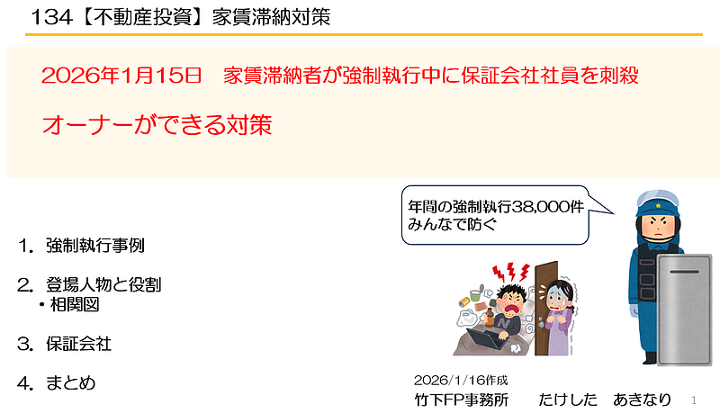 2026年1月15日 家賃滞納者が保証会社社員を殺害する事件がありました。