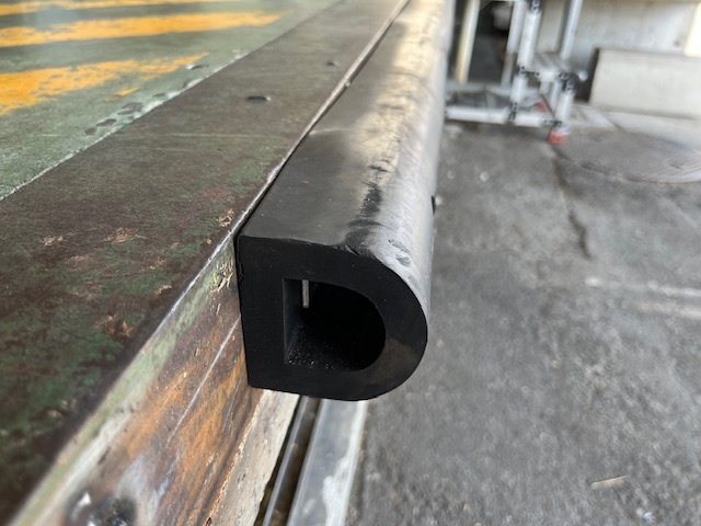 弊社では主に運搬機器・物流機器の販売と修理を行っておりますが、トラックバース設備の工事もよく行っております。その中の一つが「D型ゴムバンパーの交換工事」です。