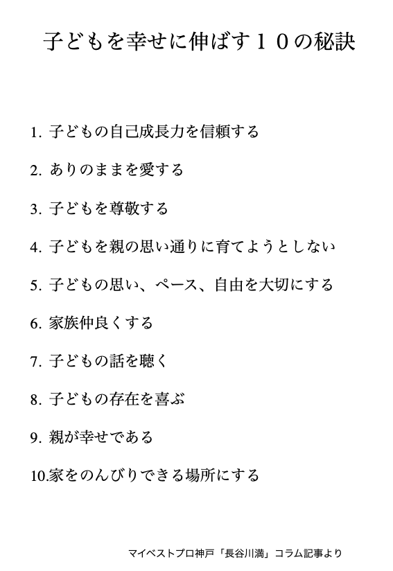 さて今日のテーマは「子どもを幸せに伸ばす10の秘訣」なんですが、まずはこちらをご覧ください。