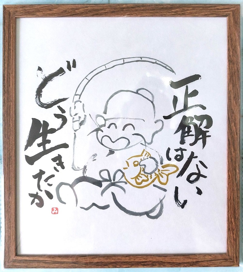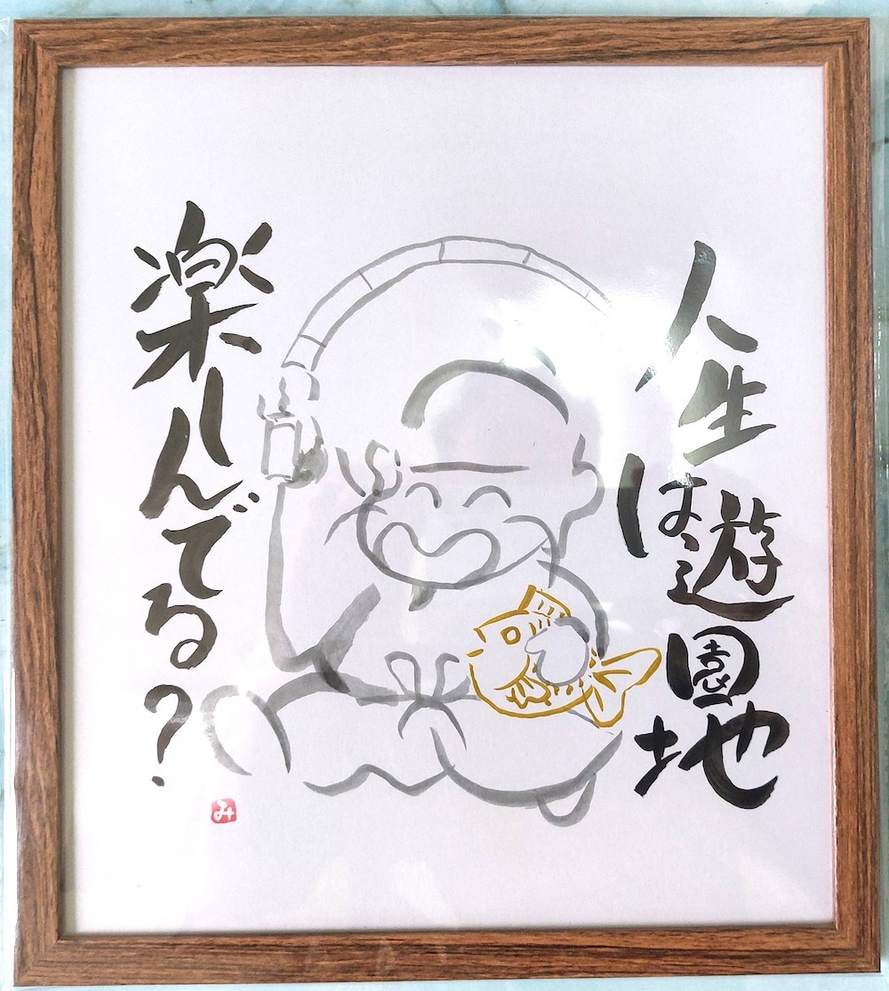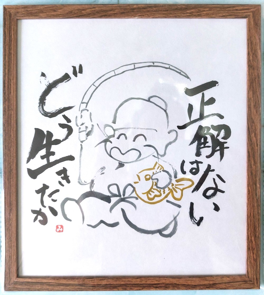 第1回無為塾で詩集「無為 そのままでよかったんだ」(税込1980円)を2冊以上購入された方に色紙サイズのえべっちゃん額をプレゼントします。これらです。