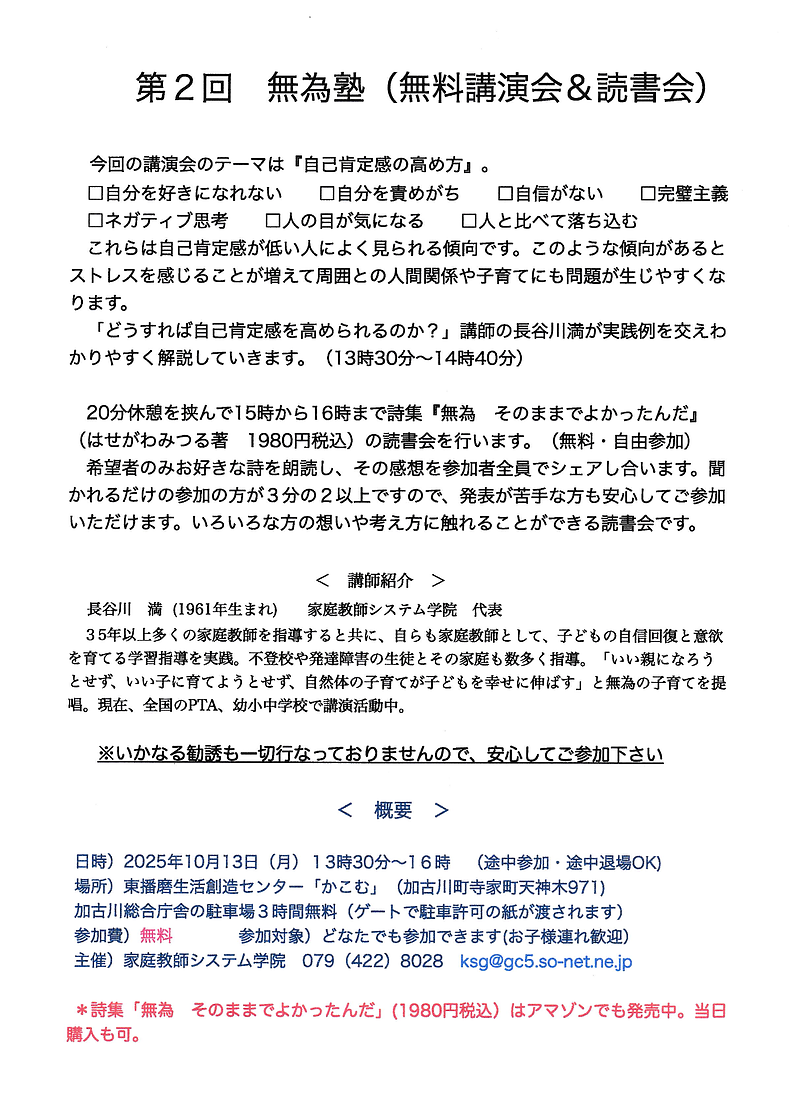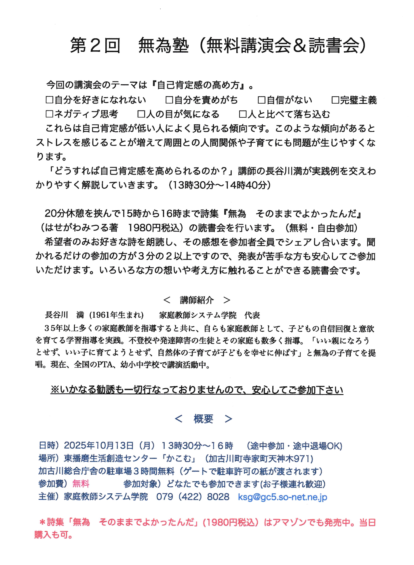 「無為の子育て 〜あなたも子どももそのままでいい〜」