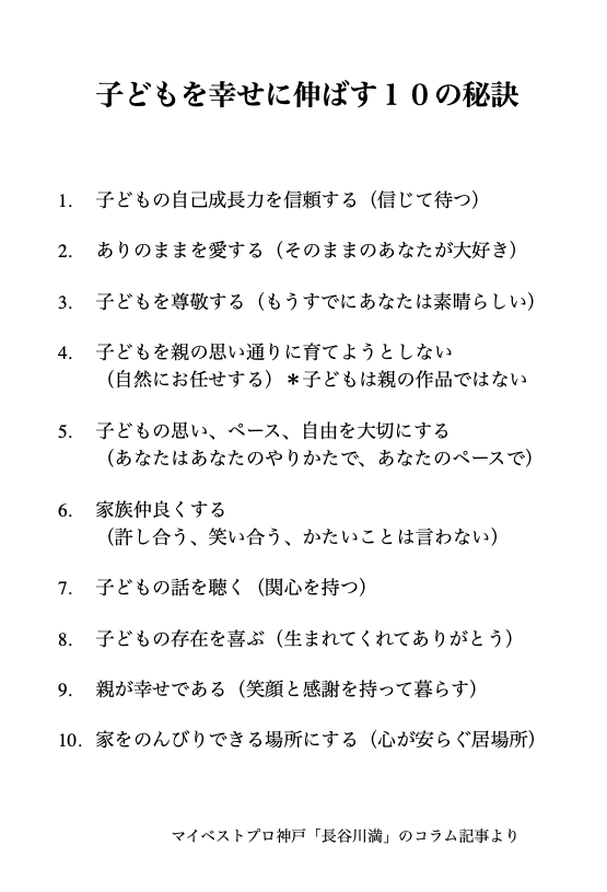 親の期待通りにはならないかもしれませんが、その子本来の在り方、その子の自然な在り方、そのまま成長してくれることがその子本来の幸せにつながるように思います。