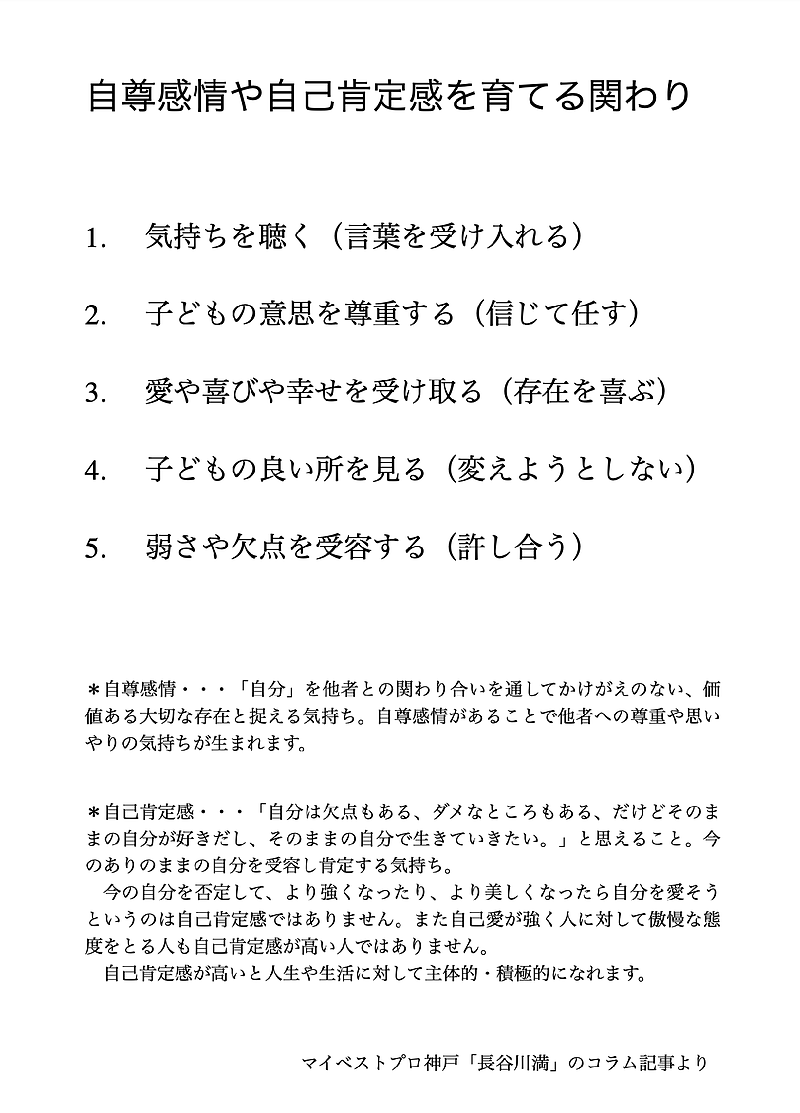 自尊感情や自己肯定感を育てる関わり