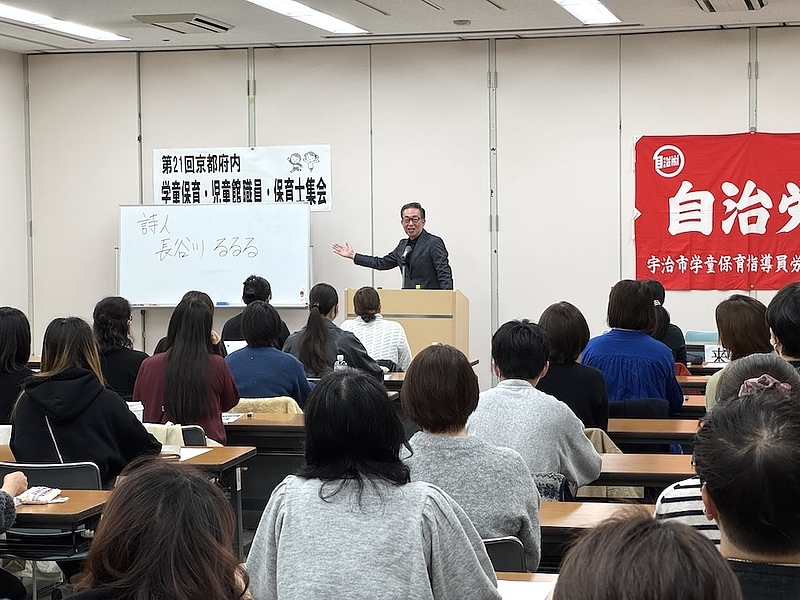 11月30日(日)は宇治市産業会館で第21回京都府 学童保育・児童館職員・保育士集会(自治労京都府本部主催)で講演させていただきました。聴いてくださるのは主に宇治市や京田辺市、八幡市の学童保育の指導員様です。