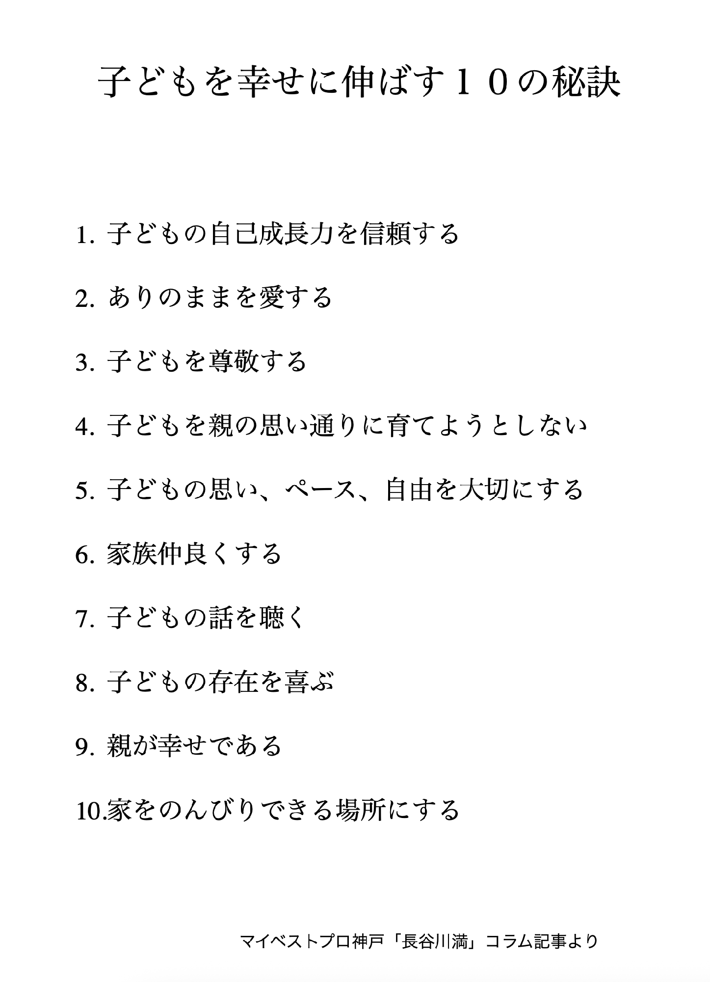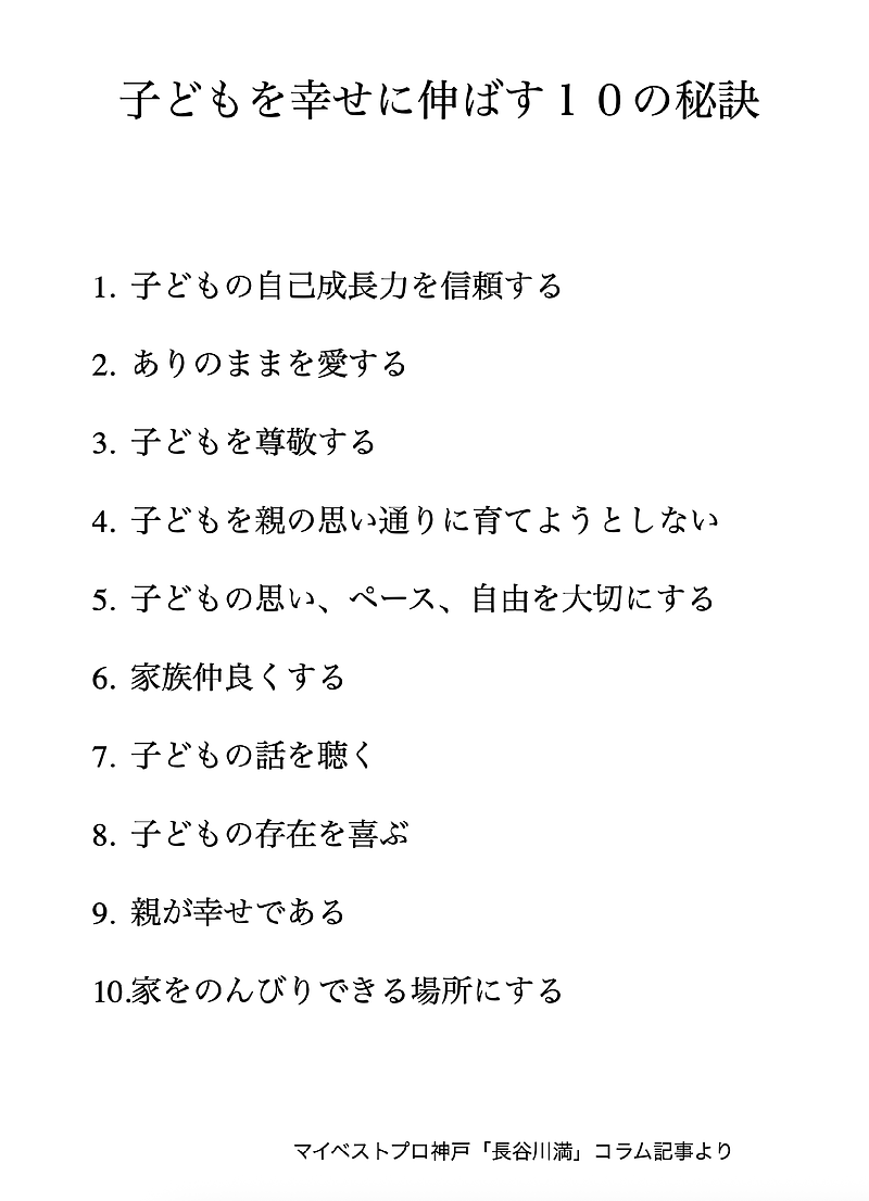 「子どもを幸せに伸ばすための10の秘訣 〜あなたのままで100点満点〜」