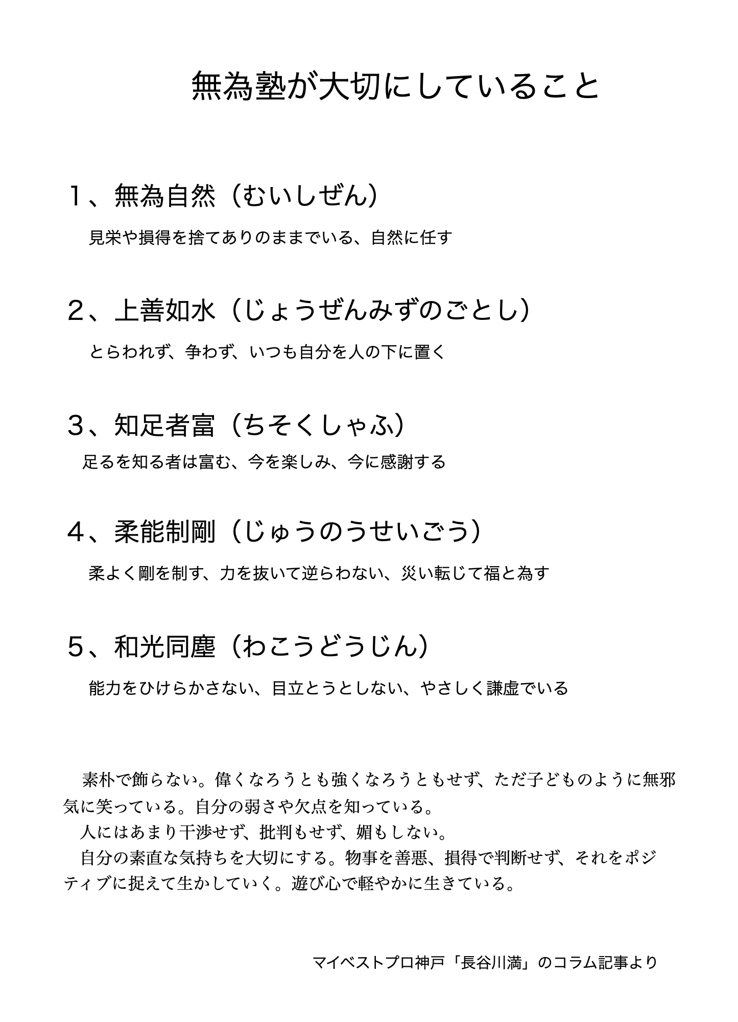 無為塾が大切にしていること