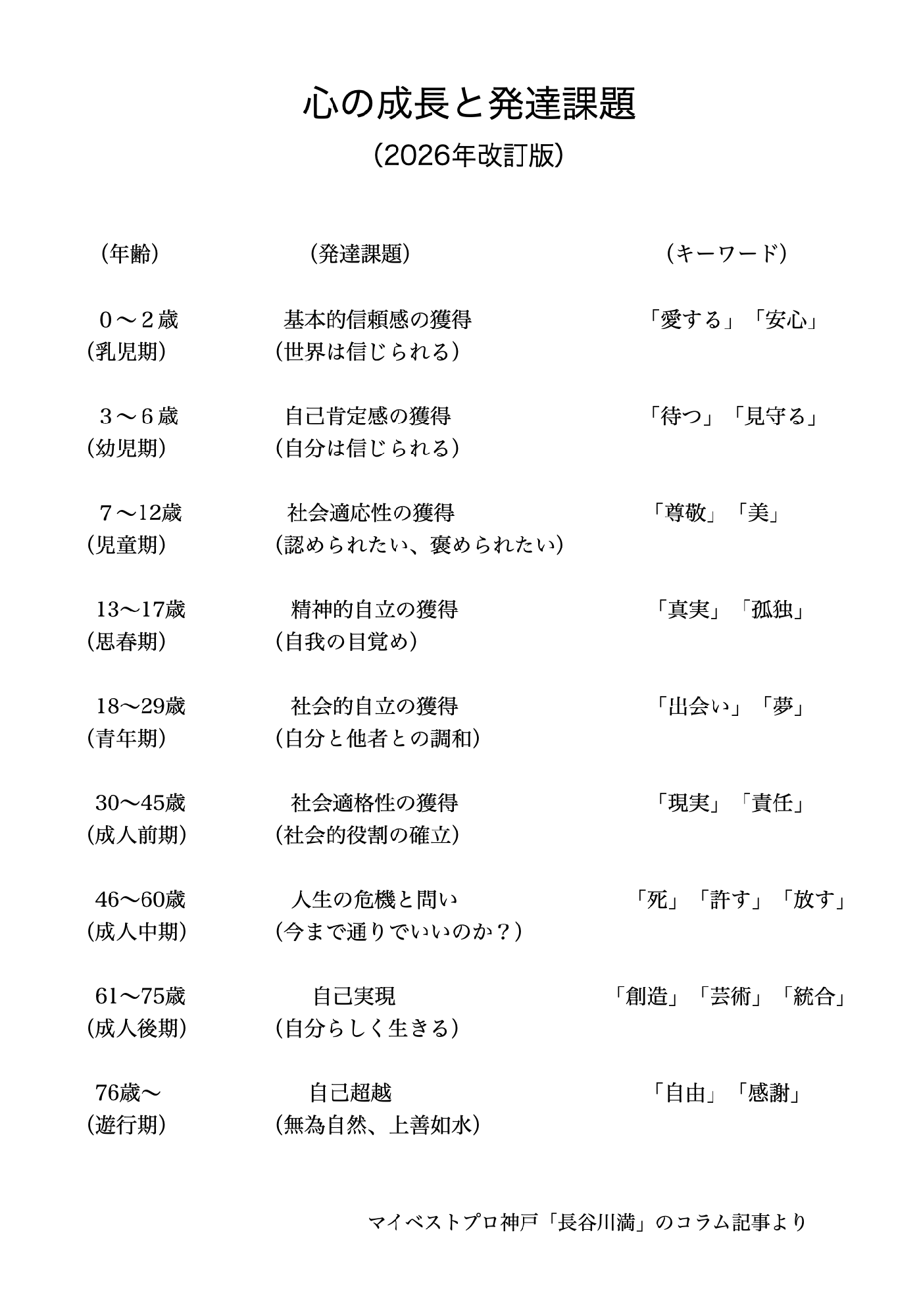 45〜60歳(成人中期)のキーワードは「死」「許す」「放す」です。