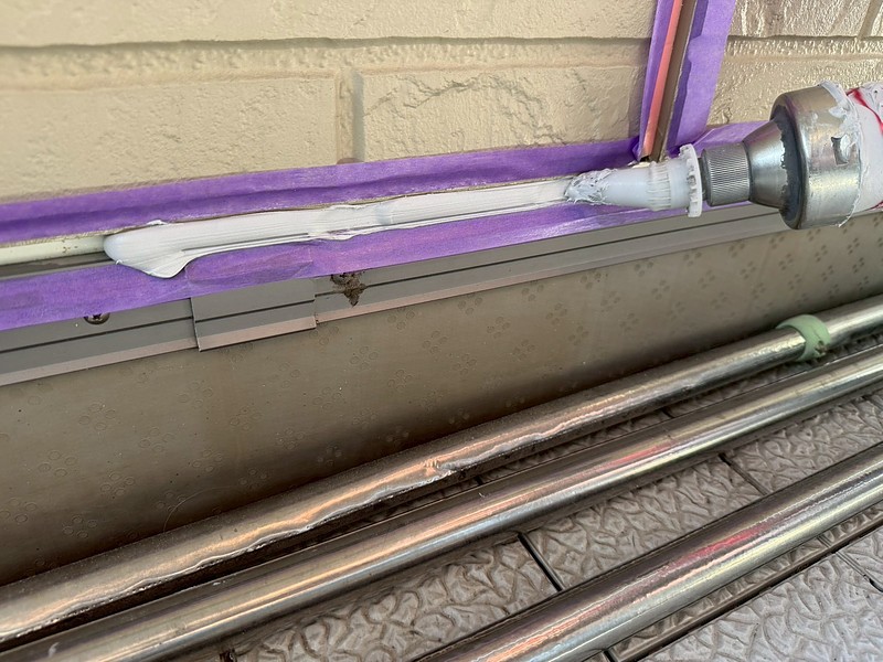 コーキングに関しては、外壁材と、サッシ周囲の隙間に充填されていたり、そもそもの外壁材の繋ぎ部分(目地)に充填されています。