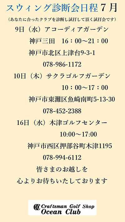 スウィング診断会が目白押しなので一覧表をあげますね。