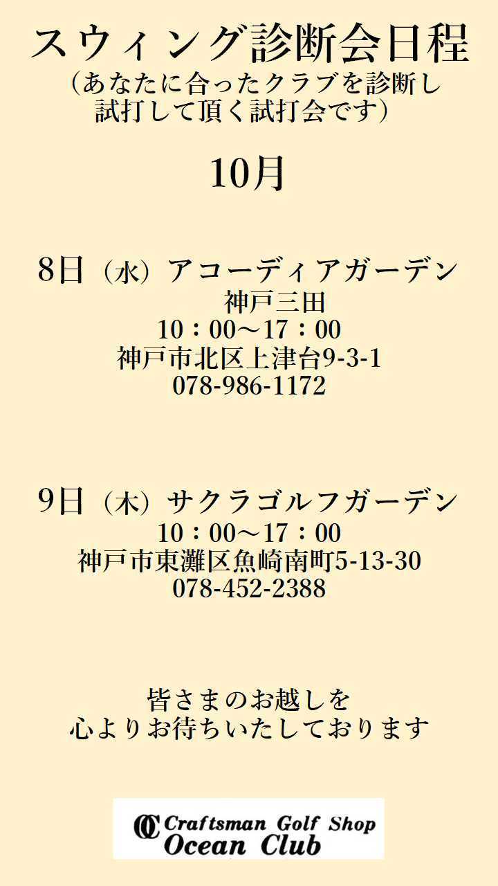 10月も試打フィッティングイベントを開催いたします