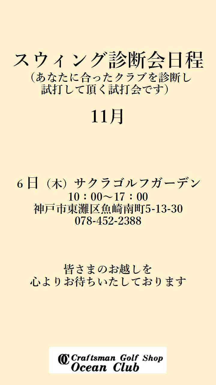 さて11月の試打フィッティングイベントは