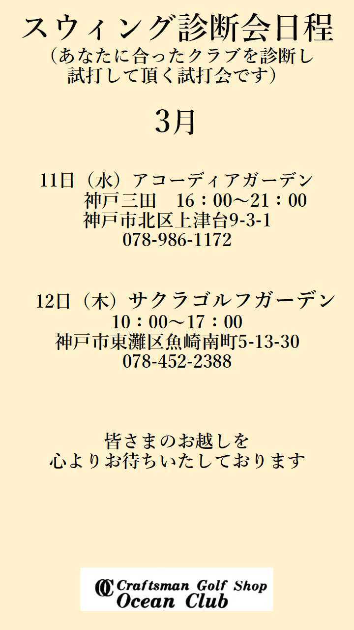 3月の試打フィッティングイベントは
