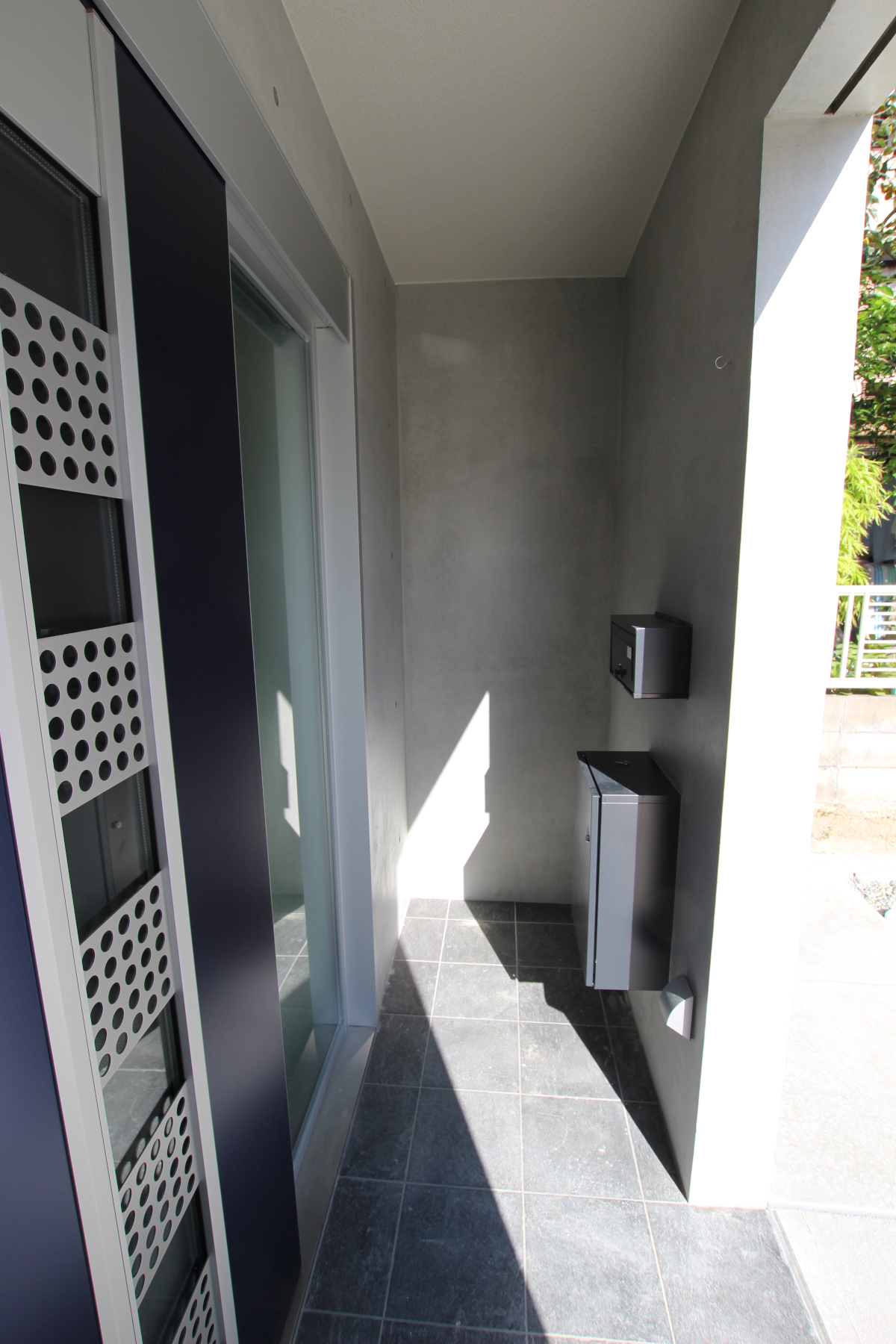 家を建てた後でも、こういう置き型のタイプであれば設置出来ますが、このタイプは、玄関の納まりとしてはスッキリしませんね。