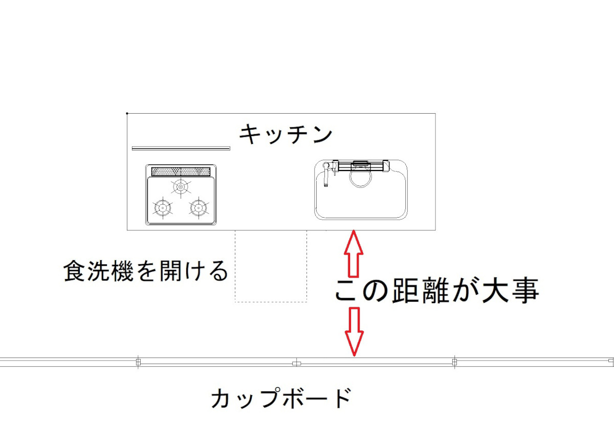 充分予想できると思いますが、ここが狭いと食器の取り出しがやりづらくなります。