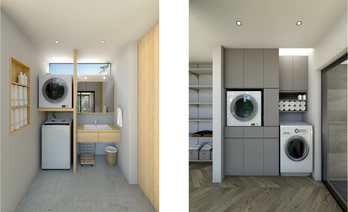 ガス乾燥機を設置している家の多くは室内物干しなどをセットにしたランドリールームを作ることが多いですね。