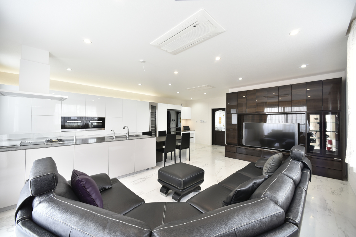最近は照明器具もダウンライトのような埋め込みタイプが増えましたので、ダウンライト+天井埋め込みエアコンですっきりしたフラットな天井にすることが多いですね。