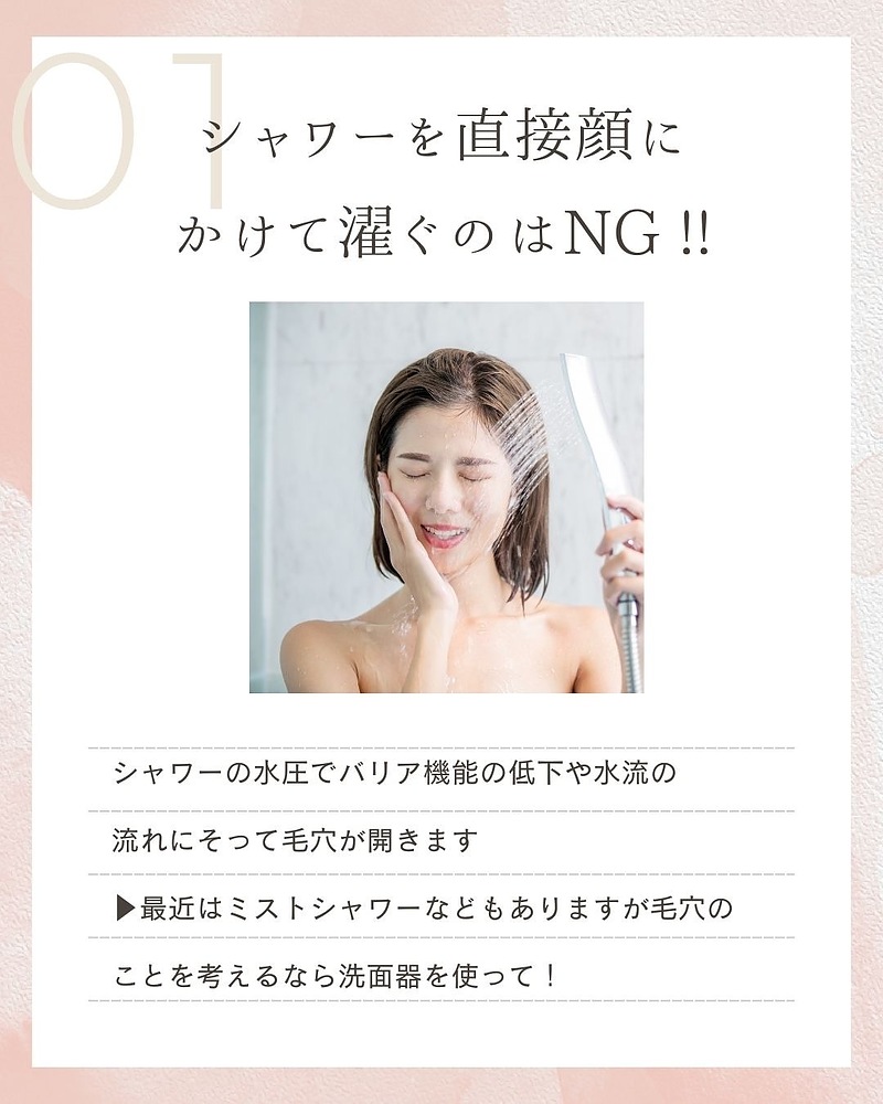 最近はミストシャワーなど優しいタイプのシャワーもありますが、毛穴の開きが気になるなら