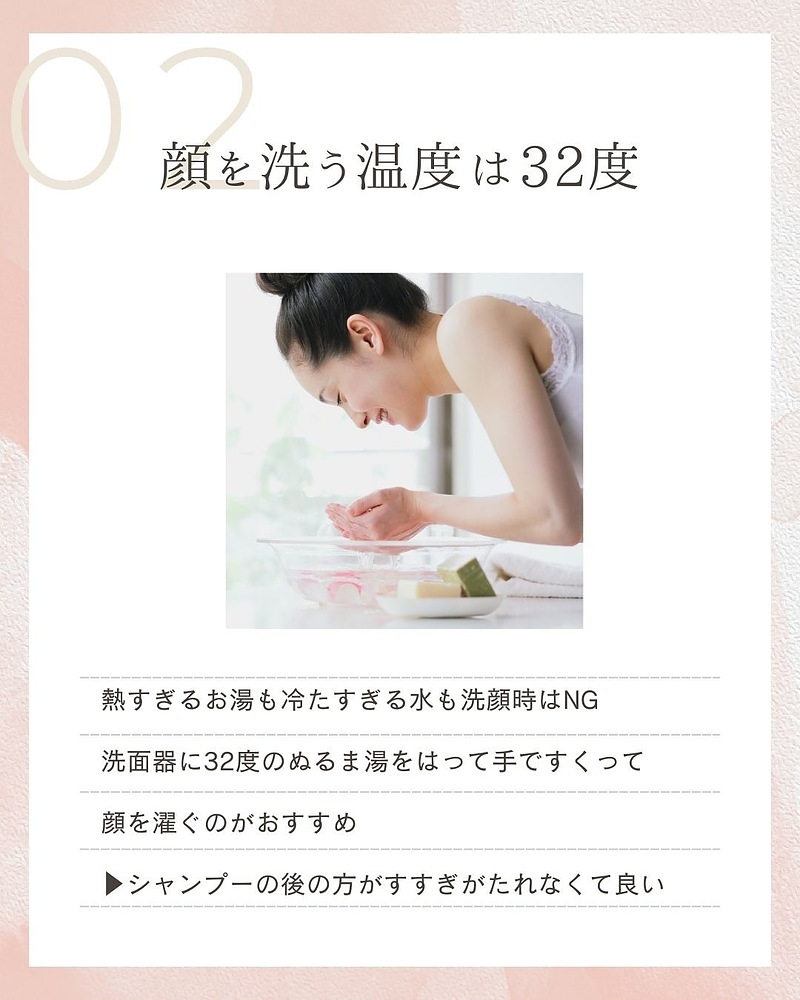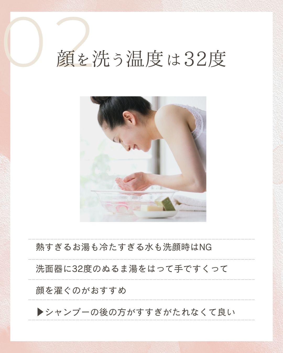 ②顔を洗う時は31〜32度の冷た過ぎないお水を使う