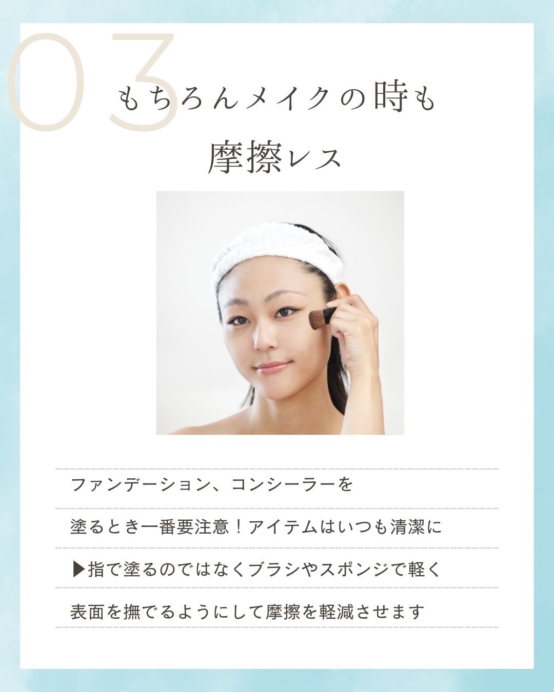 お肌の表面を撫でるように、軽やかに重ねていくことで摩擦を最小限にできます。