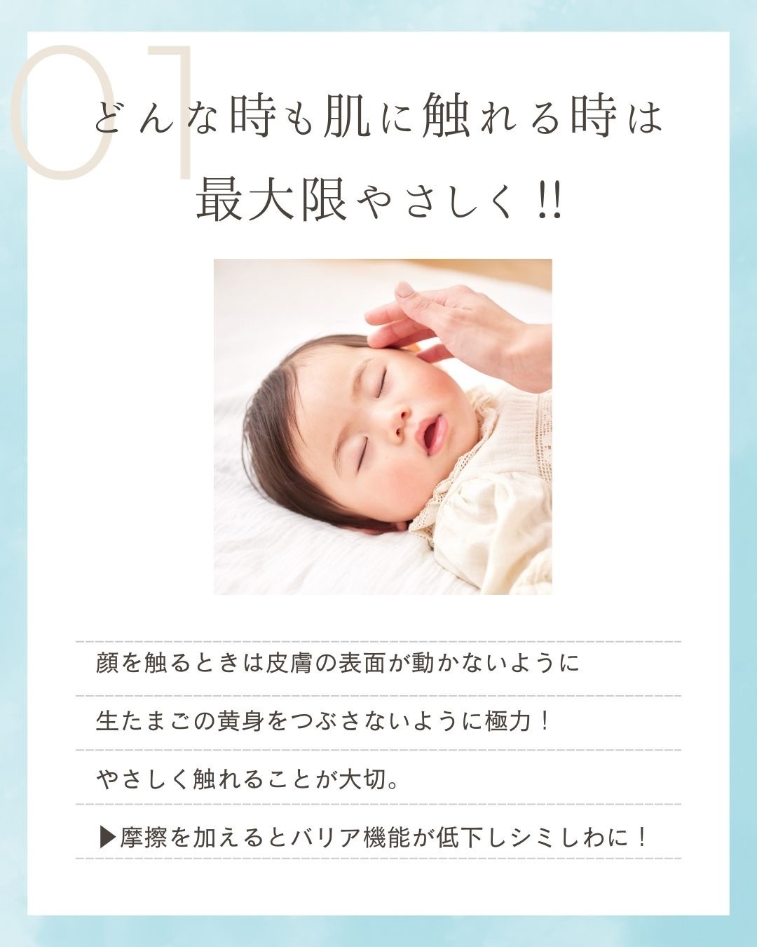 お肌に触れる時は、皮膚が寄れないように優しくそっとが基本。