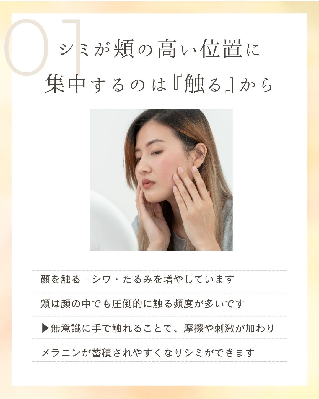 頬は日常的に無意識に手が触れやすい場所です。