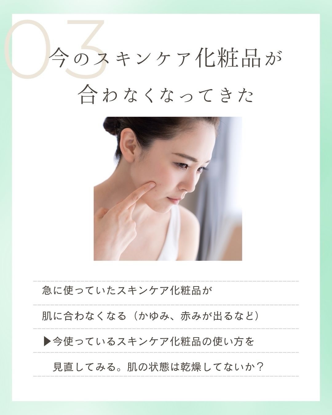 もし、使い慣れた化粧品で「合わなくなったかも」と感じることがあれば